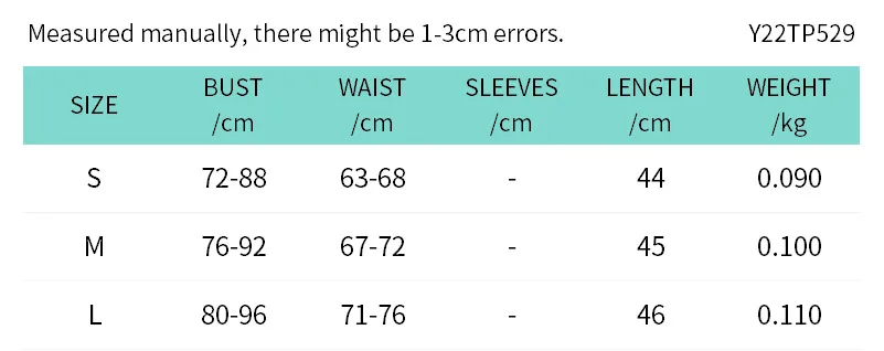 (Note:All weights and sizes are measured,SIZE ERROR up1-3CM,WEIGHT ERROR at most 10g .)