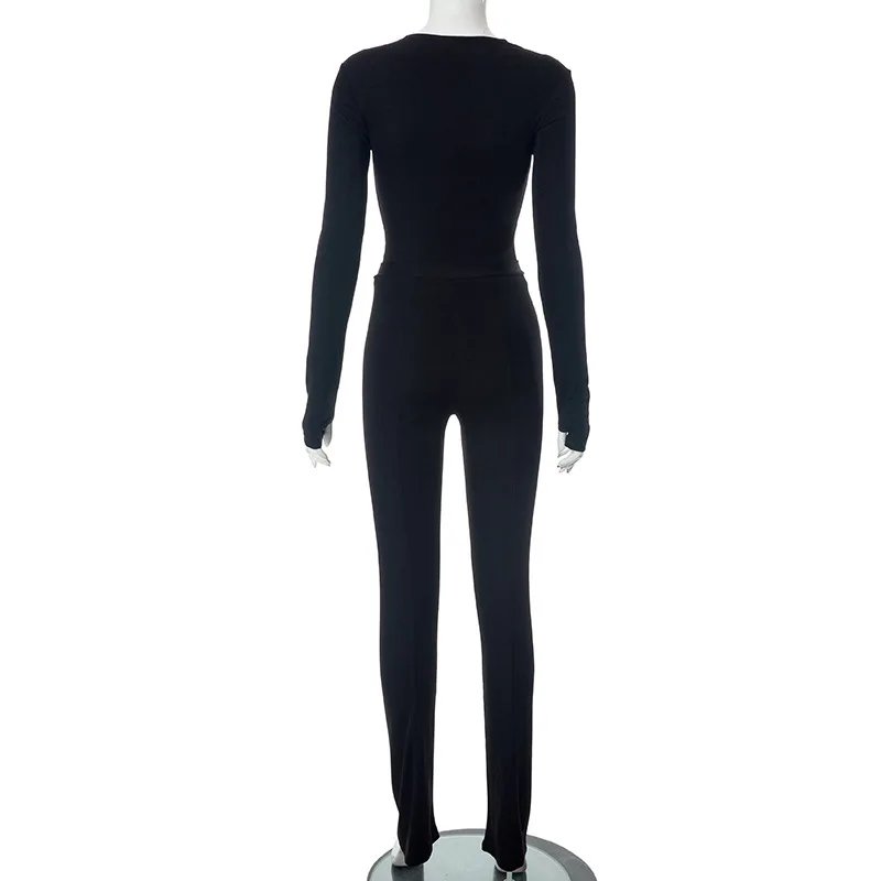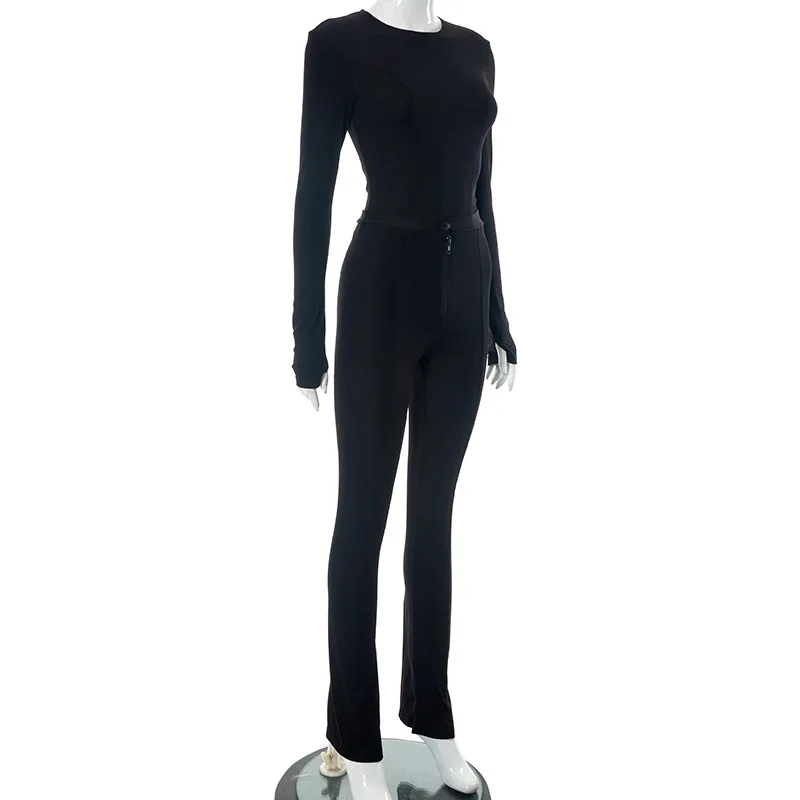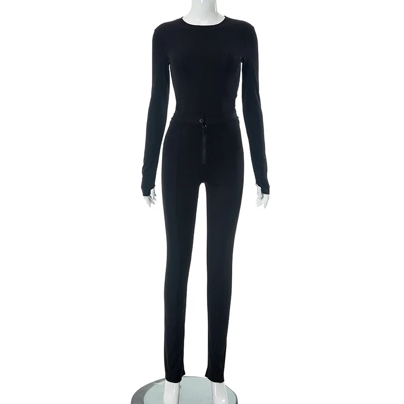 C1709 2023 Winter New Tight Long Sleeve Top Zipper Button Pants Casual Set