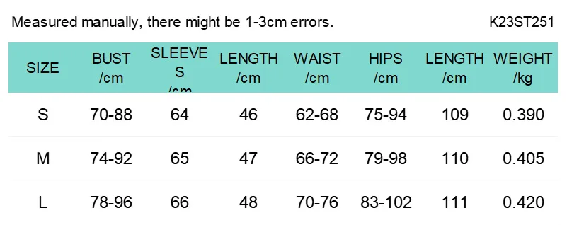 (Note:All weights and sizes are measured,SIZE ERROR up1-3CM,WEIGHT ERROR at most 10g .)