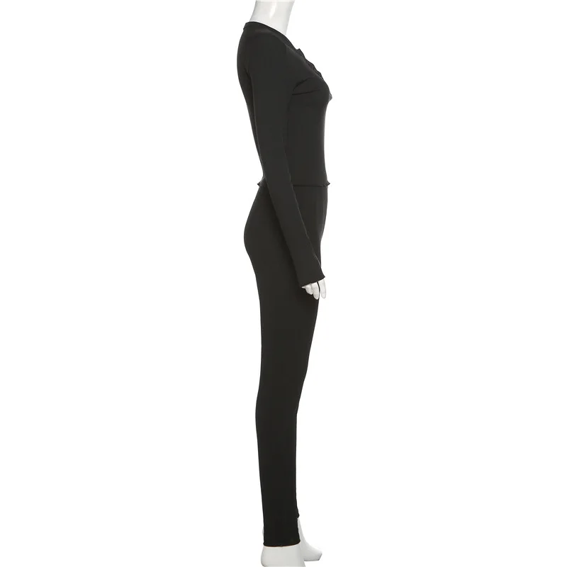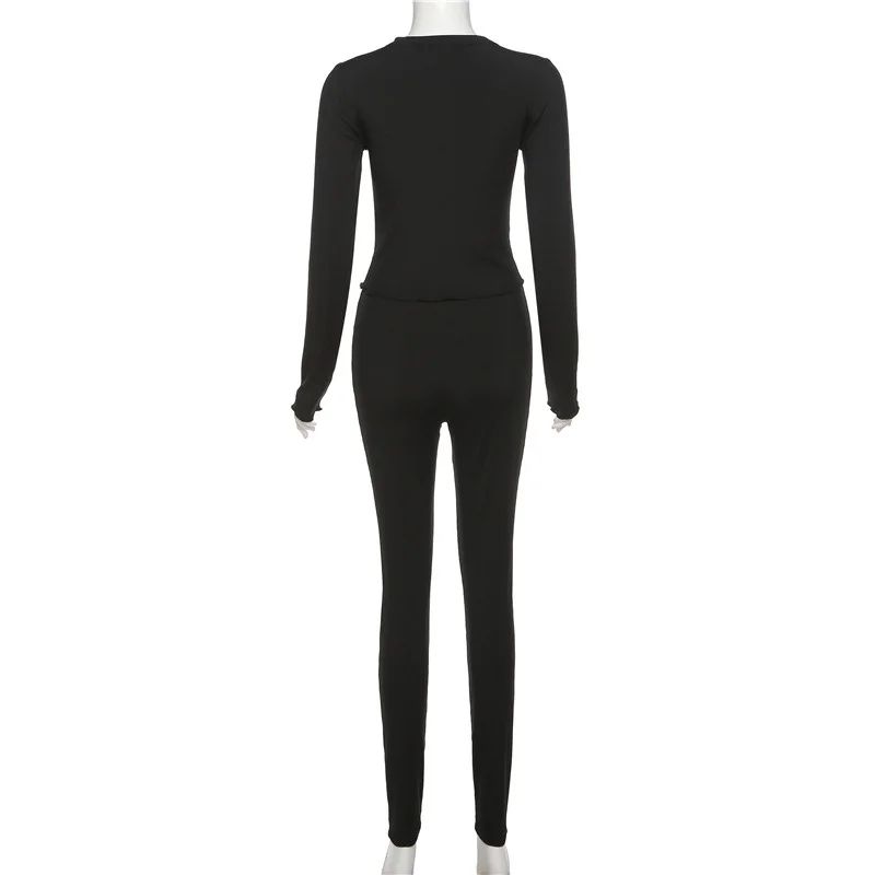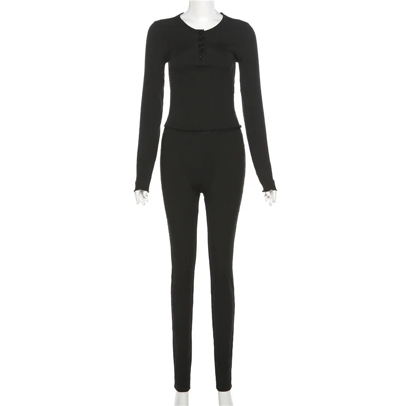 C1798 2023 Women's New Sexy Round Neck Button Top Tights Casual Sports Suit Women