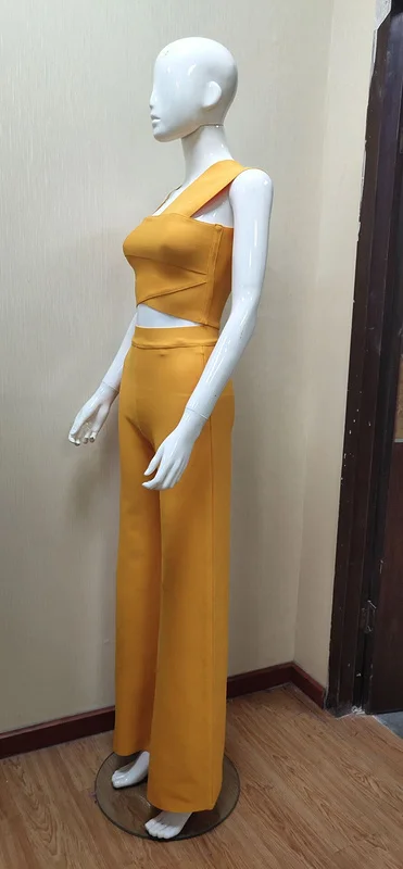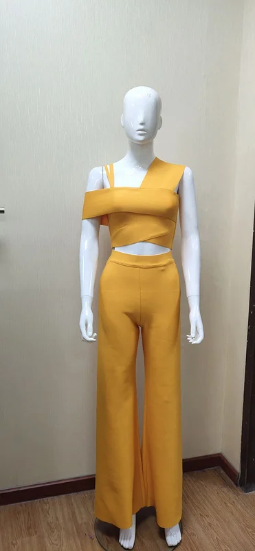 C1991 custom 2024 new arrival high quality orange women club crop top two piece set sexy pant set