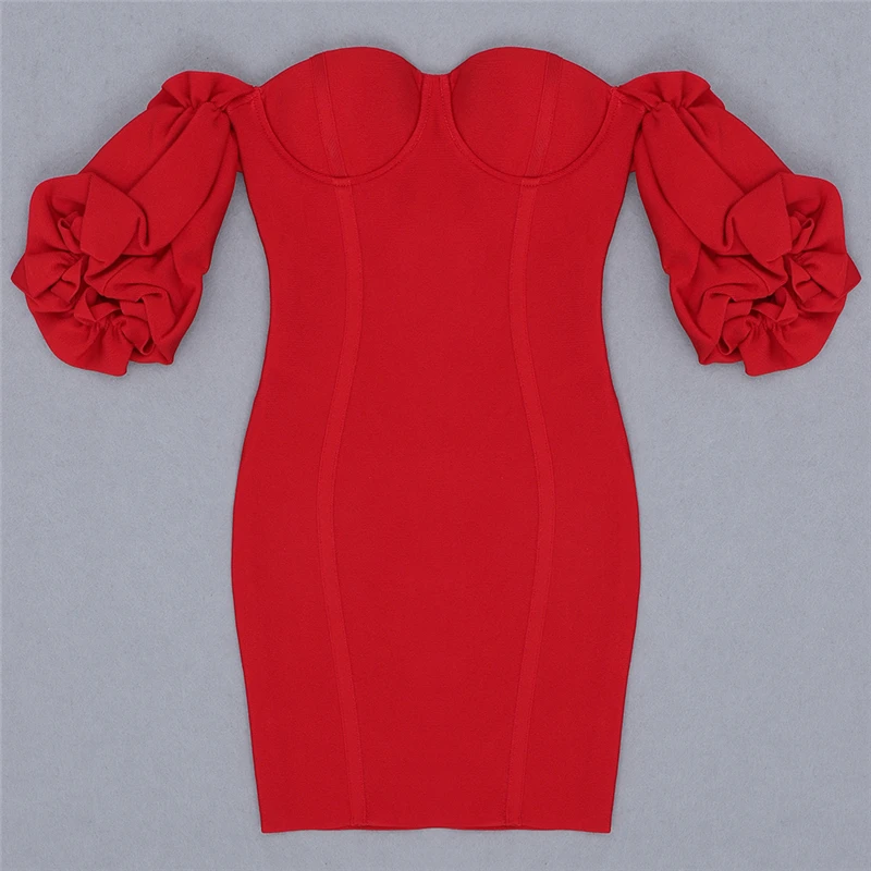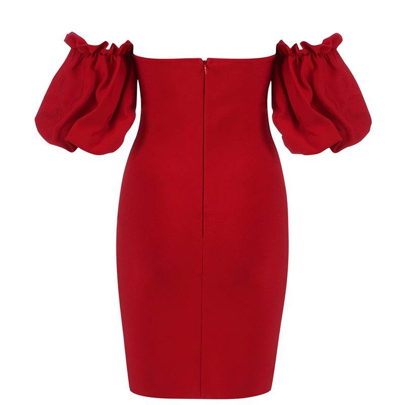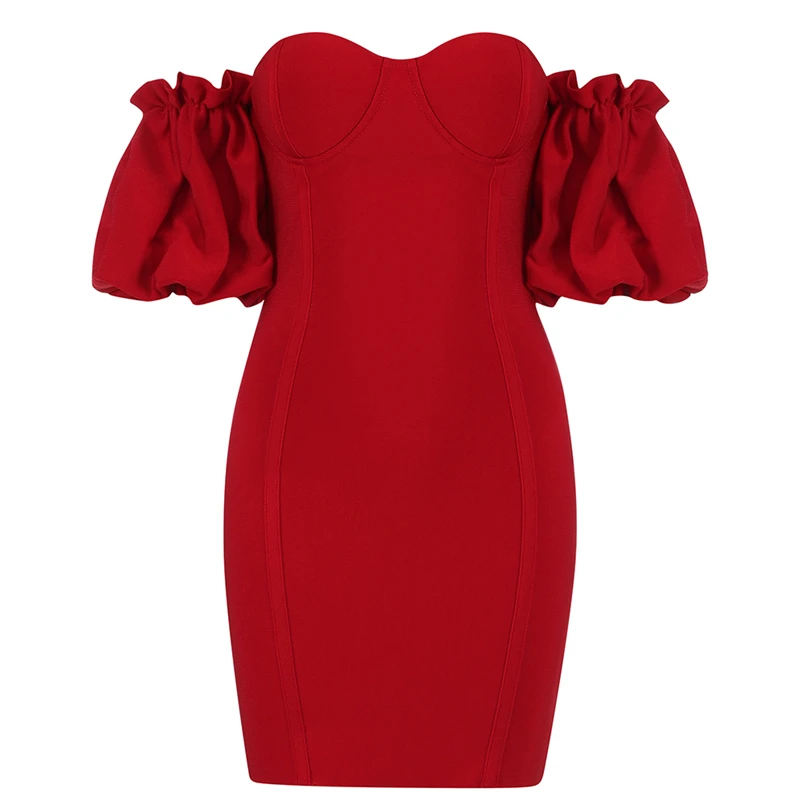 C2243 Sexy Bodycon off-shoulder Tube top puff sleeve mini women white red dress