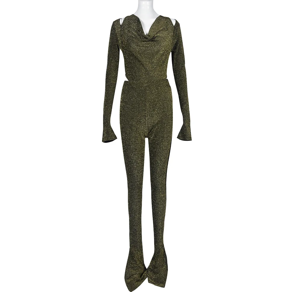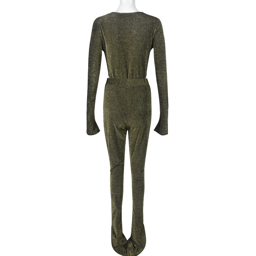 C2289 2023 womens full sleeve sets Long Sleeve Casual Gold Two Piece Pants Set