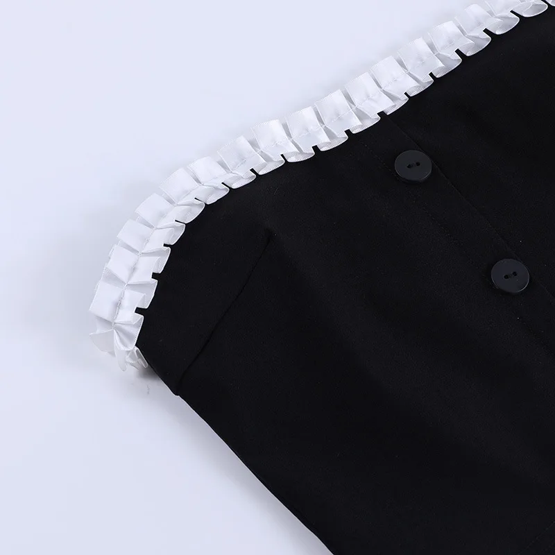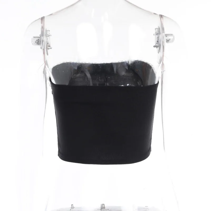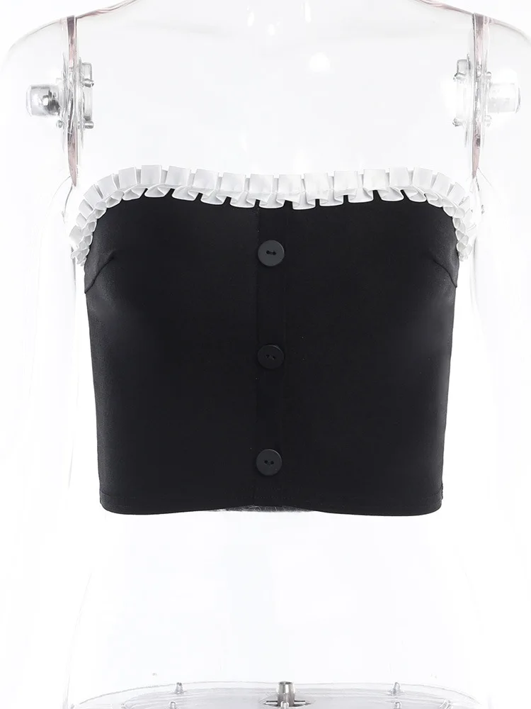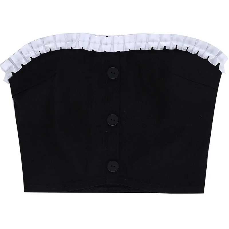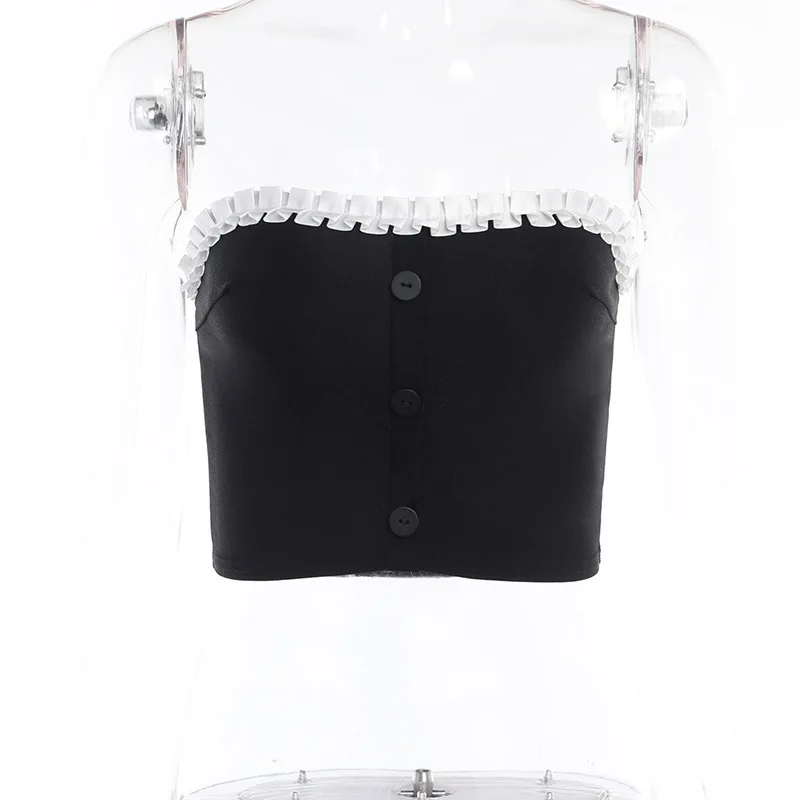 C2293 Summer Sexy One Line Neck Short Hollow Button Lace Tube Top Women
