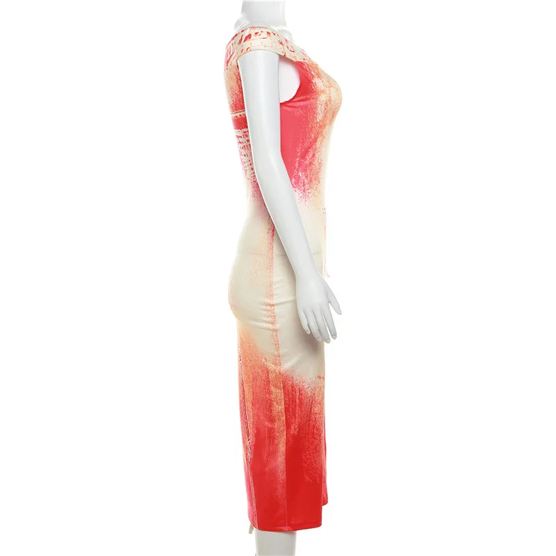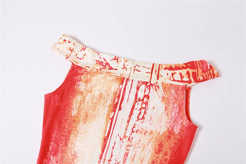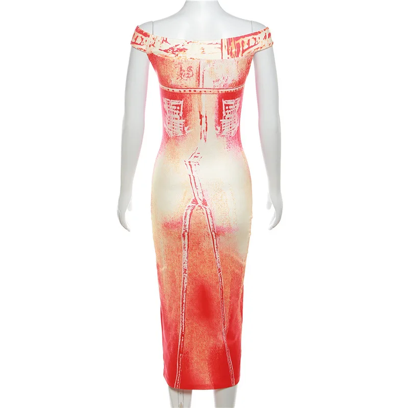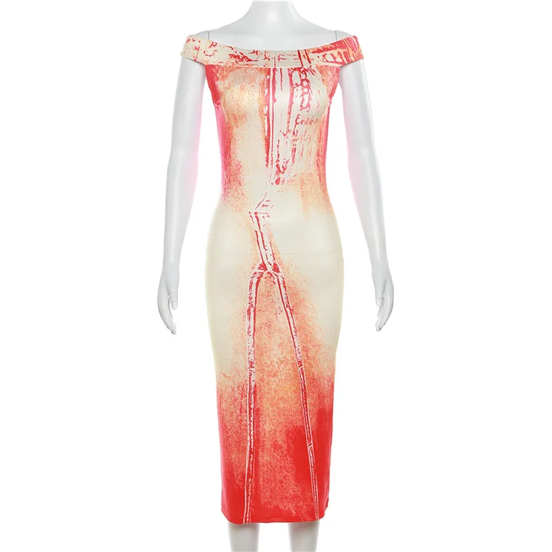 C2362 Autumn New Fashion 3D Print Off Shoulder Round Neck High Waist Long Dress for Women