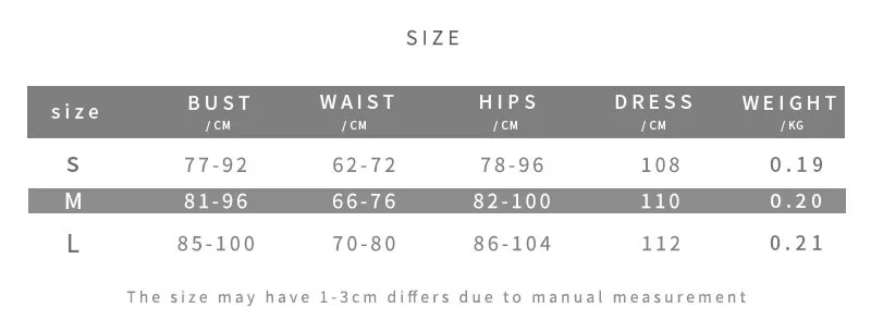 (Note:All weights and sizes are measured,SIZE ERROR up1-3CM,WEIGHT ERROR at most 10g .)
