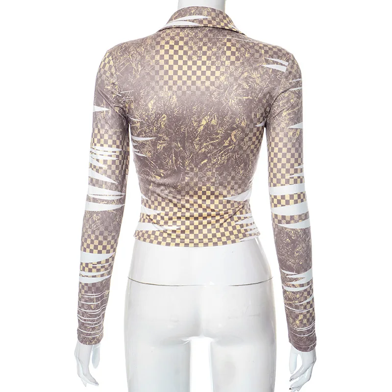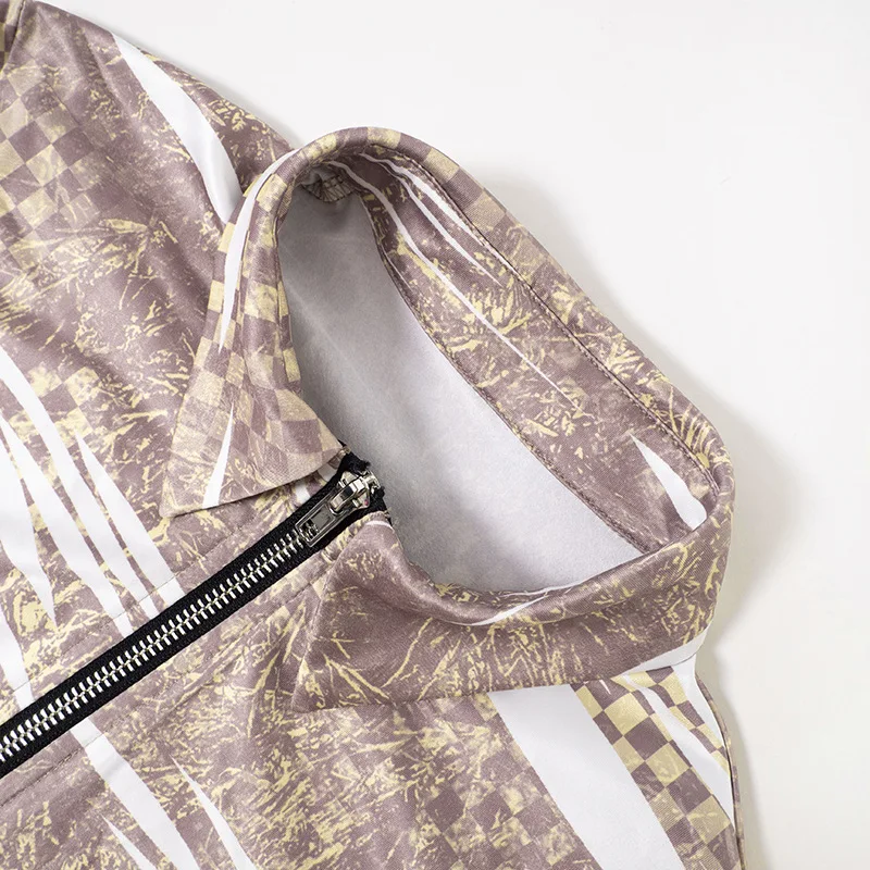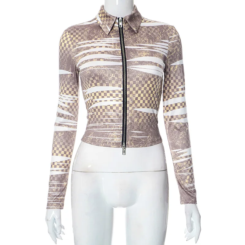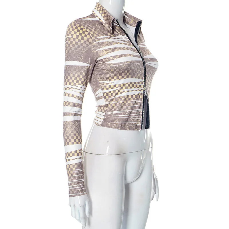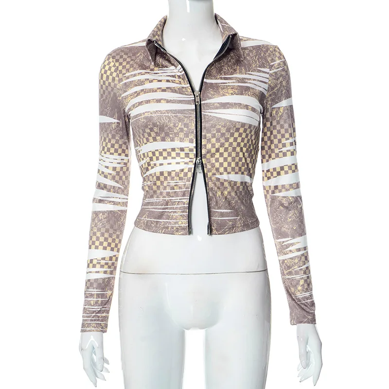 C2393 2023 New Printed Fashion Polo Collar Zipper Jacket Long Sleeve Tight Coat