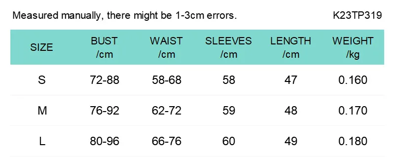 (Note:All weights and sizes are measured,SIZE ERROR up1-3CM,WEIGHT ERROR at most 10g .)