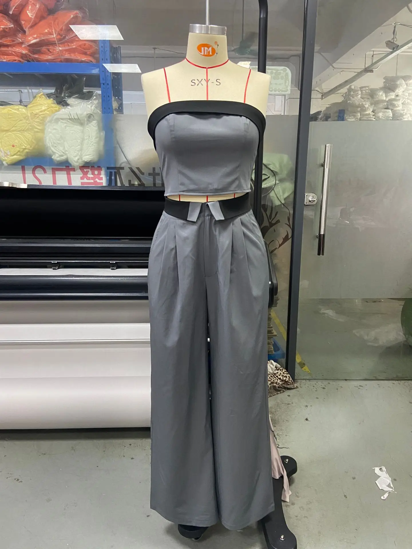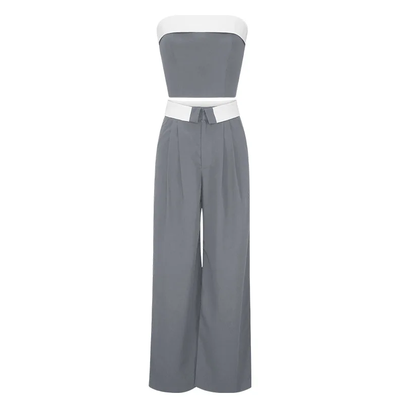 C2401 Summer Tank Top Wide Leg Suit Pants Fashion Casual Two Piece Set for Women