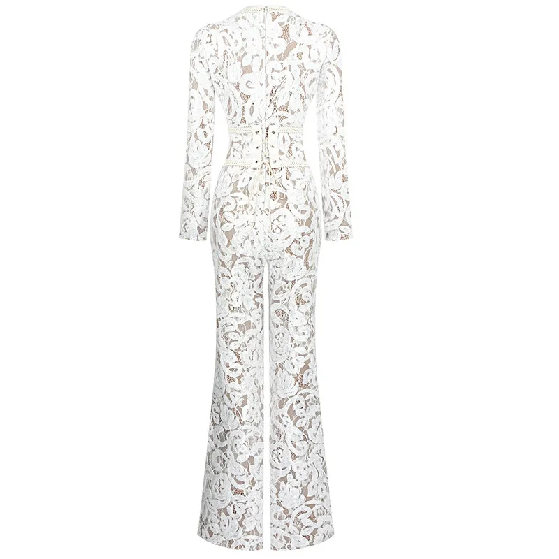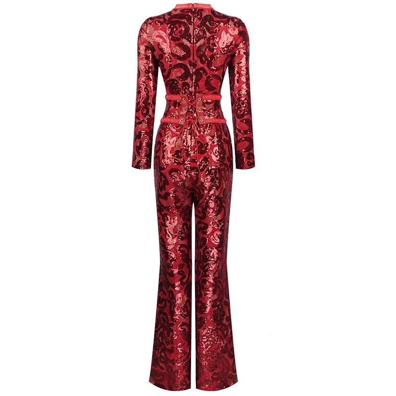 C2404 Factory Price White Red O Neck Pattern Slim Women Casual Jumpsuit