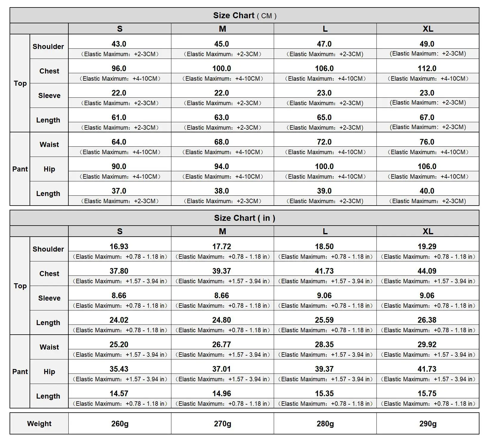 (Note:All weights and sizes are measured,SIZE ERROR up1-3CM,WEIGHT ERROR at most 10g .)