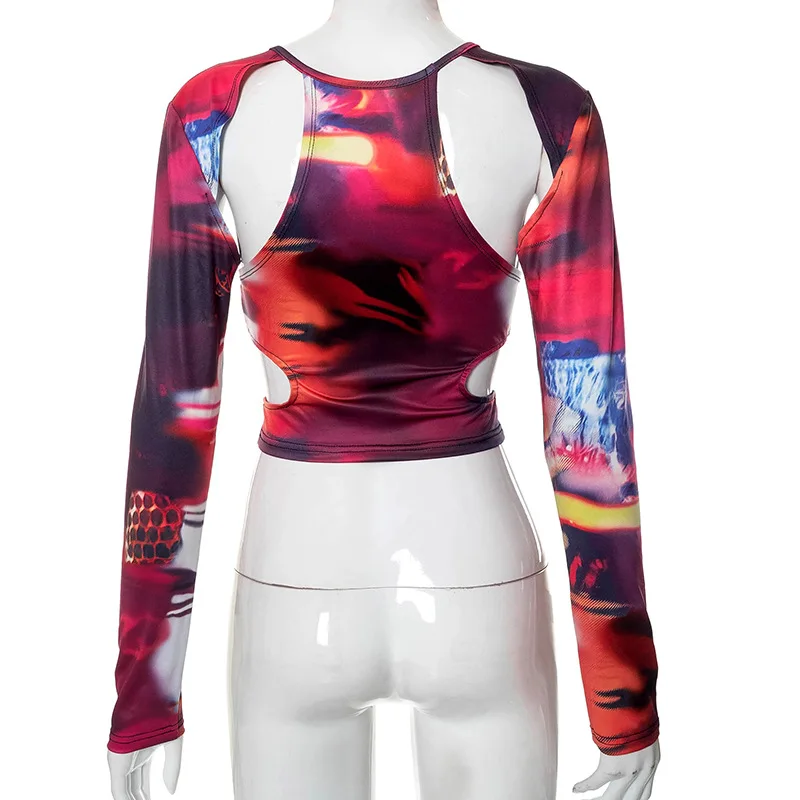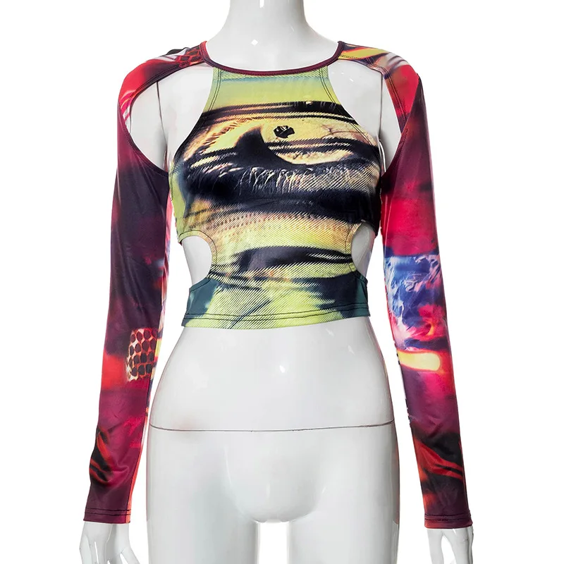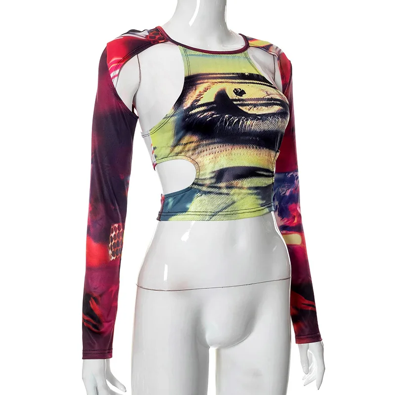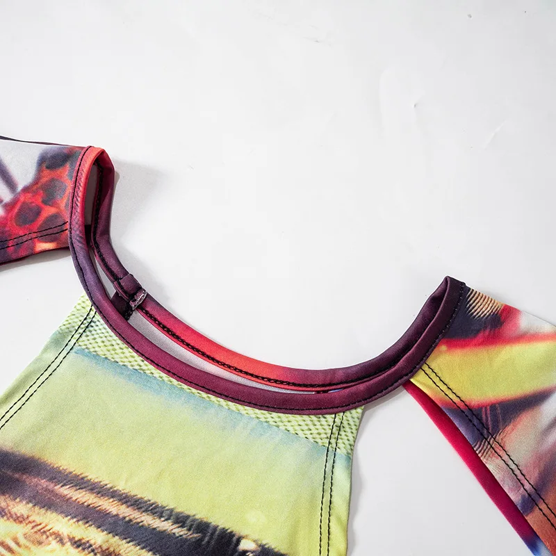 C2417 Wholesale of new fashion printed long sleeved T-shirts for women's tight fitting T-shirts