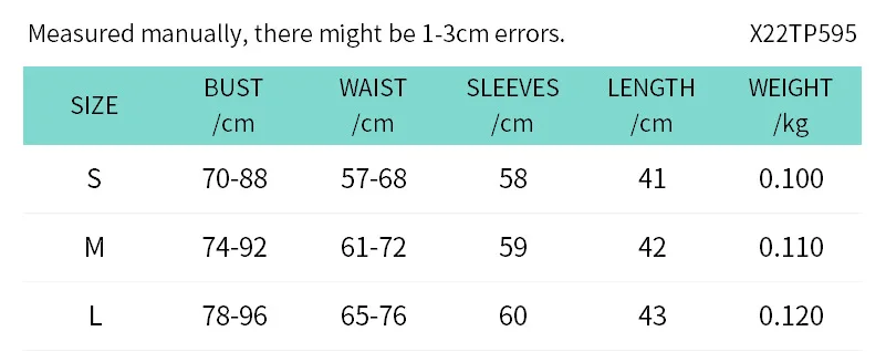 (Note:All weights and sizes are measured,SIZE ERROR up1-3CM,WEIGHT ERROR at most 10g .)