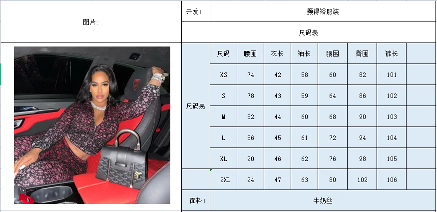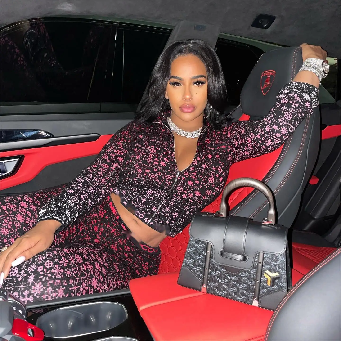 C2456 New Digital Printing Zipper Long Sleeve Pants Fashion 2 piece set women fall 2023