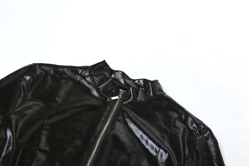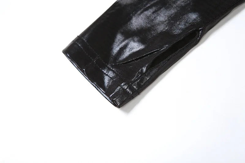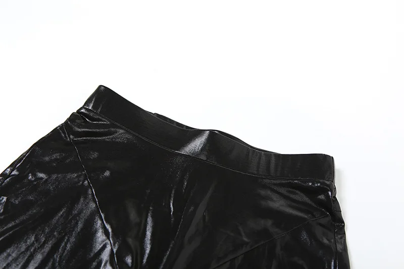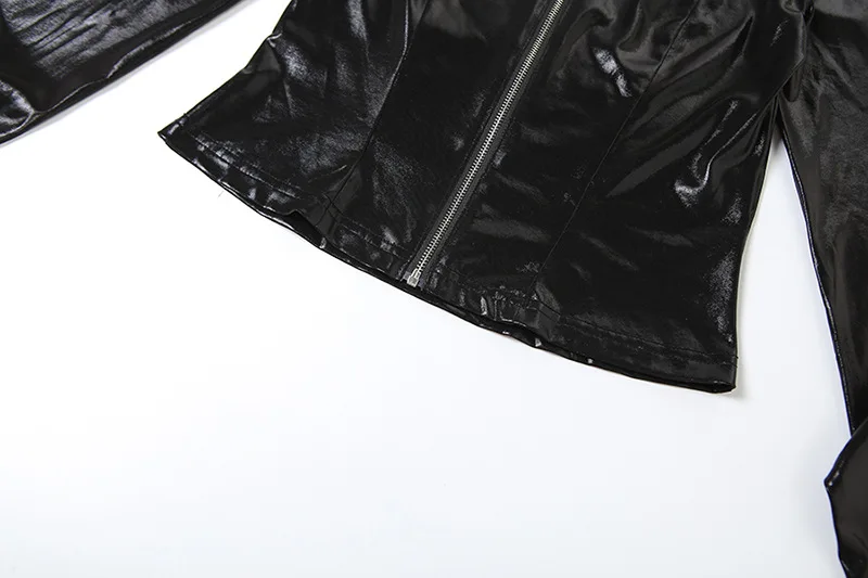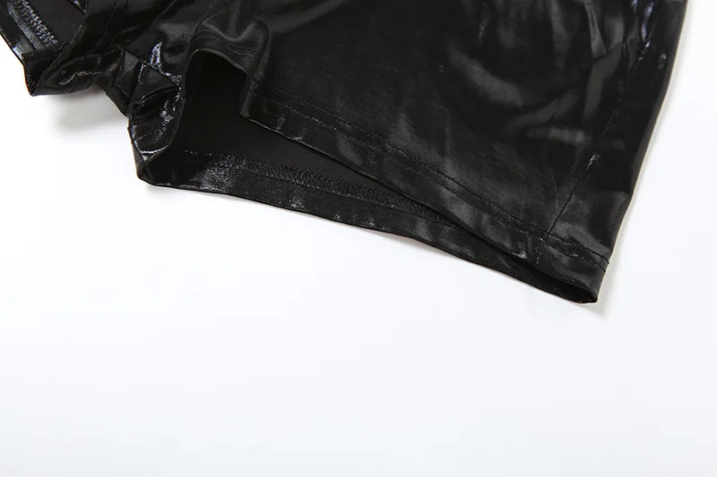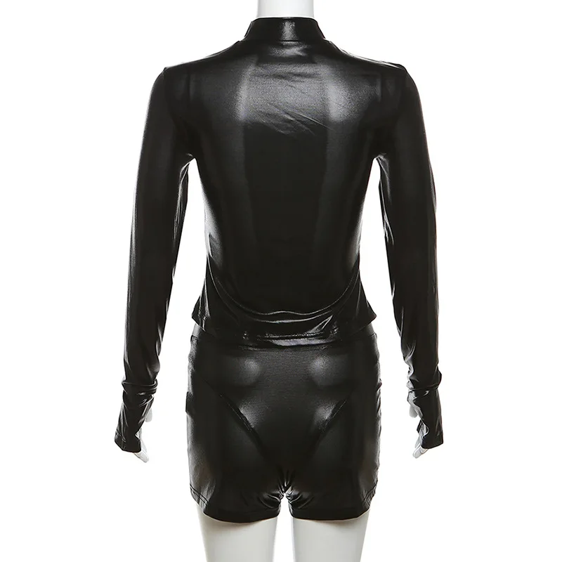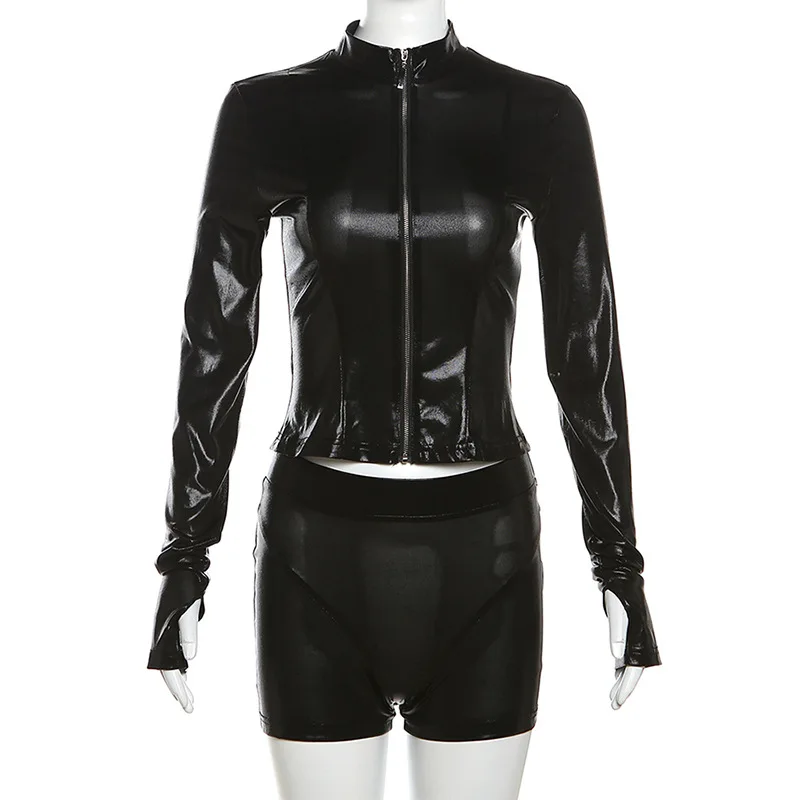 C2467 Autumn Women's New Casual Long Sleeve Top High Waist Shorts PU Leather Set for Women