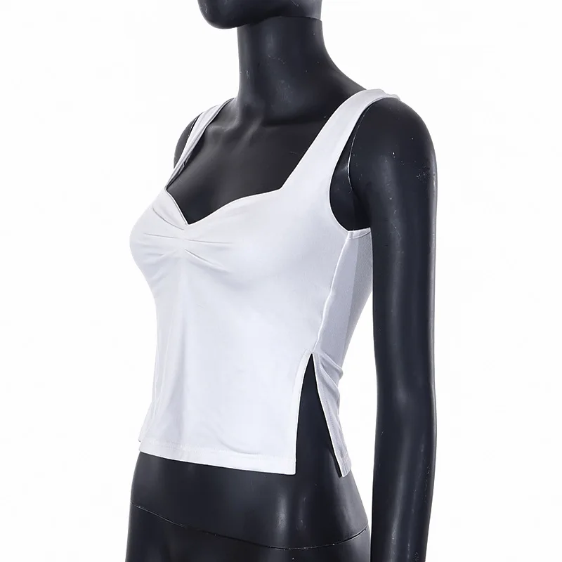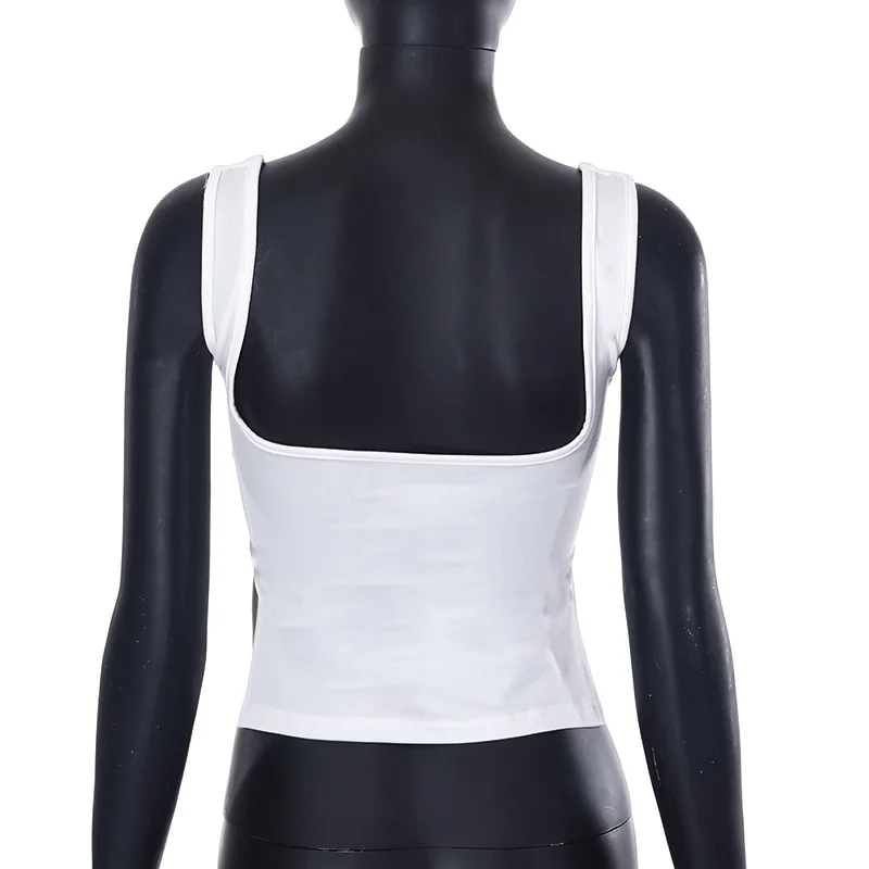 Camis Summer 2024 Y2K Double Layer Square Collar Tank Women Slim Split Crop Tops Chic Backless Sleeveless Casual