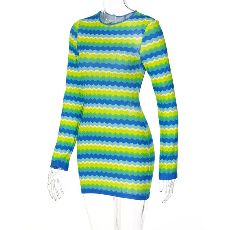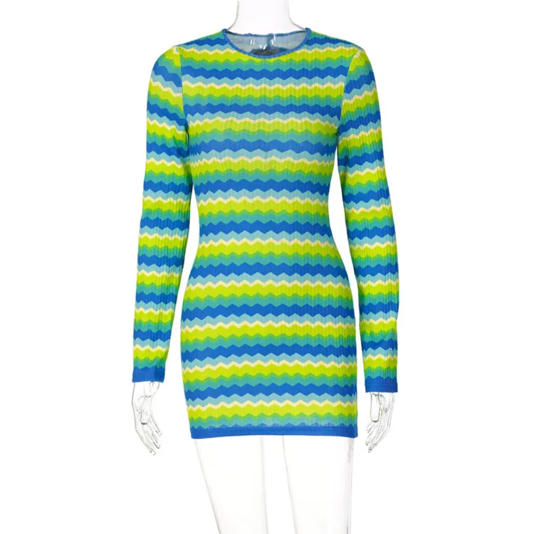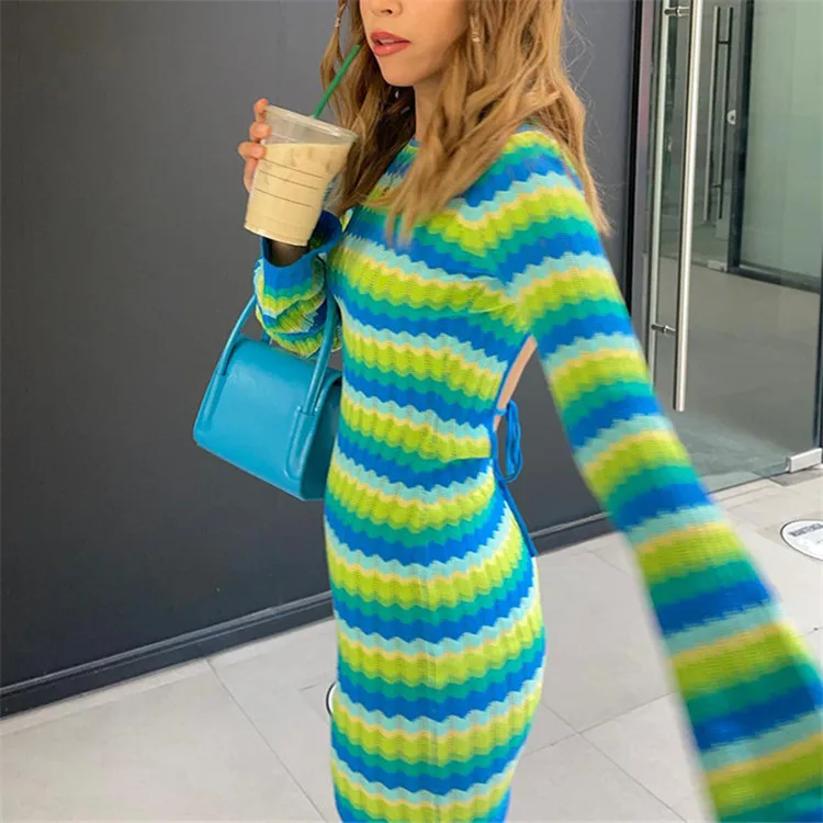 Candy Color Knitted Mini Dress Women Autumn Long Sleeve Backless Holiday Dress