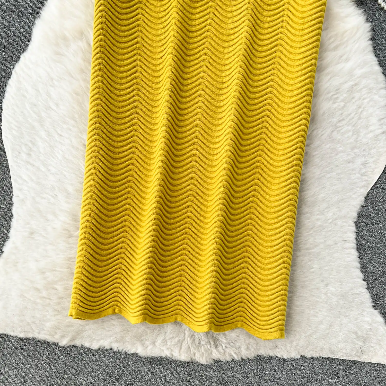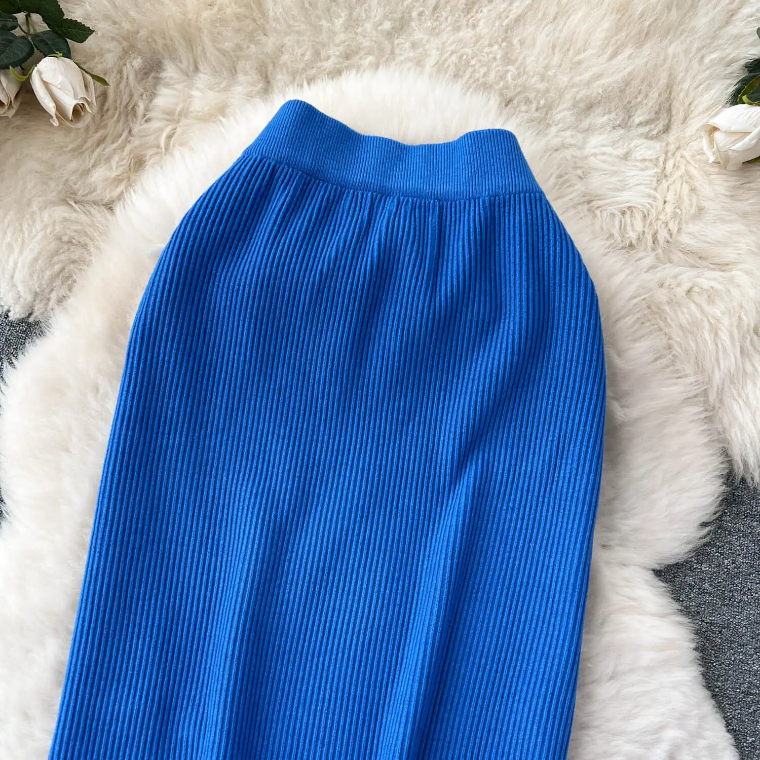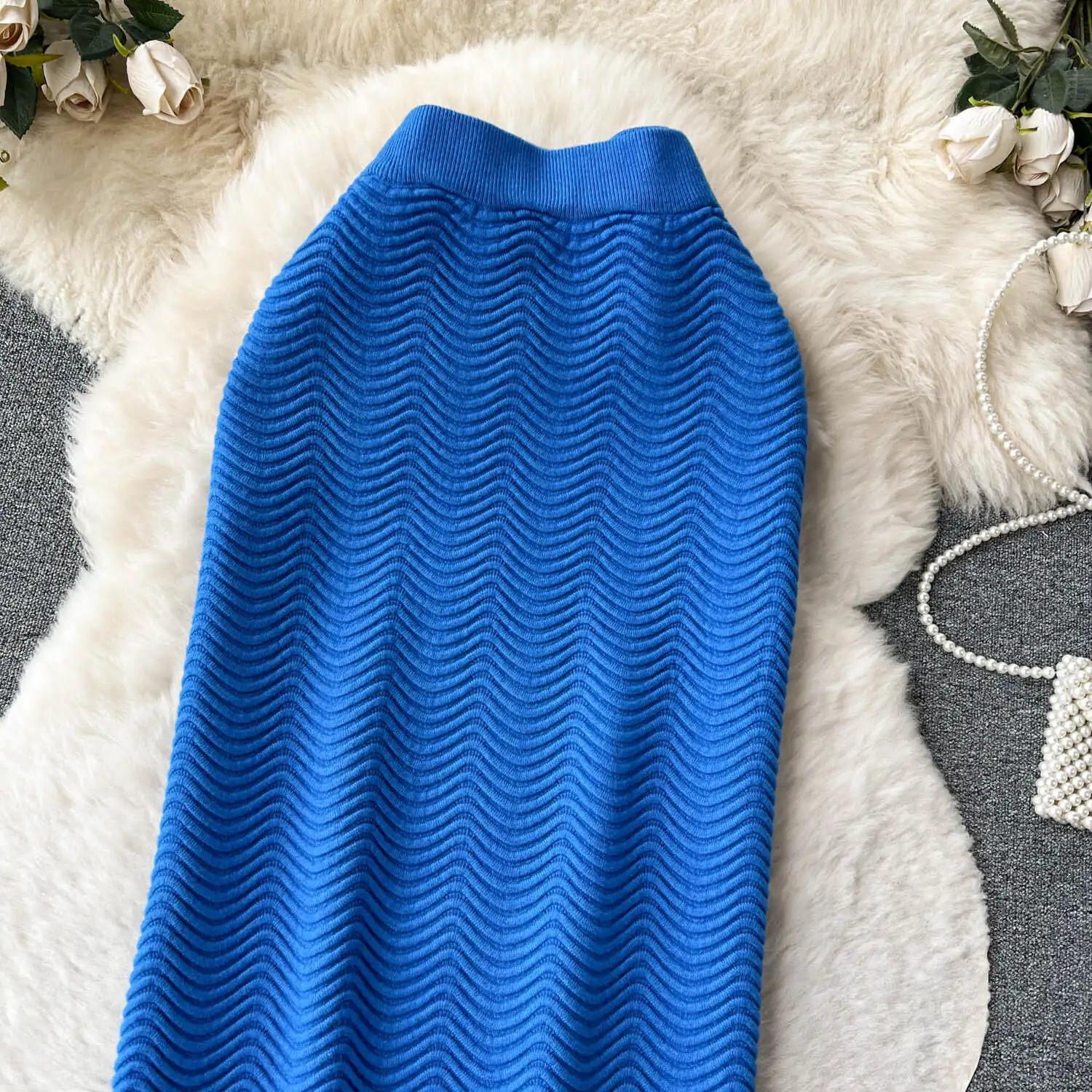 Candy color Sweater Skirt with High Quality 2023 New High Waist Versatile Mid length Wave Pattern Half Skirt for Women