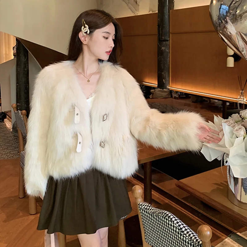 Candy Color V Neck Cropped Fur Jackets Pretty Fox Fur Coat Women Winter Coat