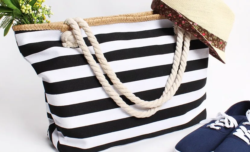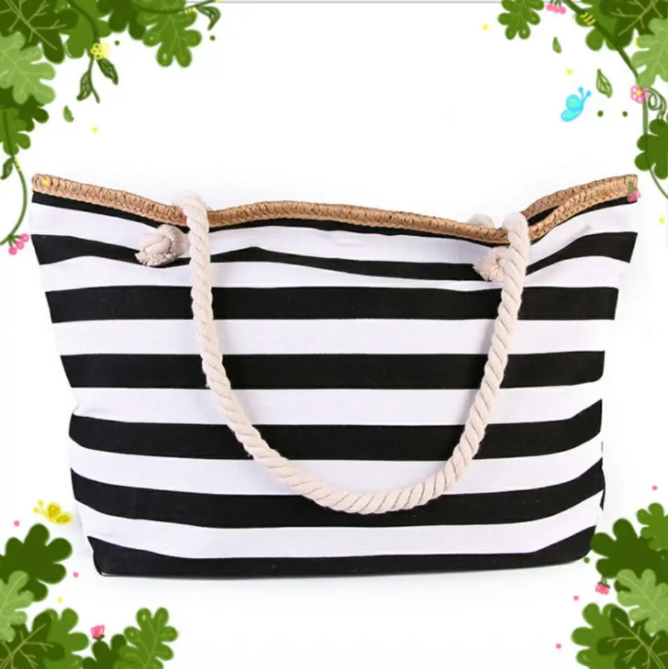 Canvas Handbag 2022 Striped Women's Shopping Bag Environmental Bag Beach Bag