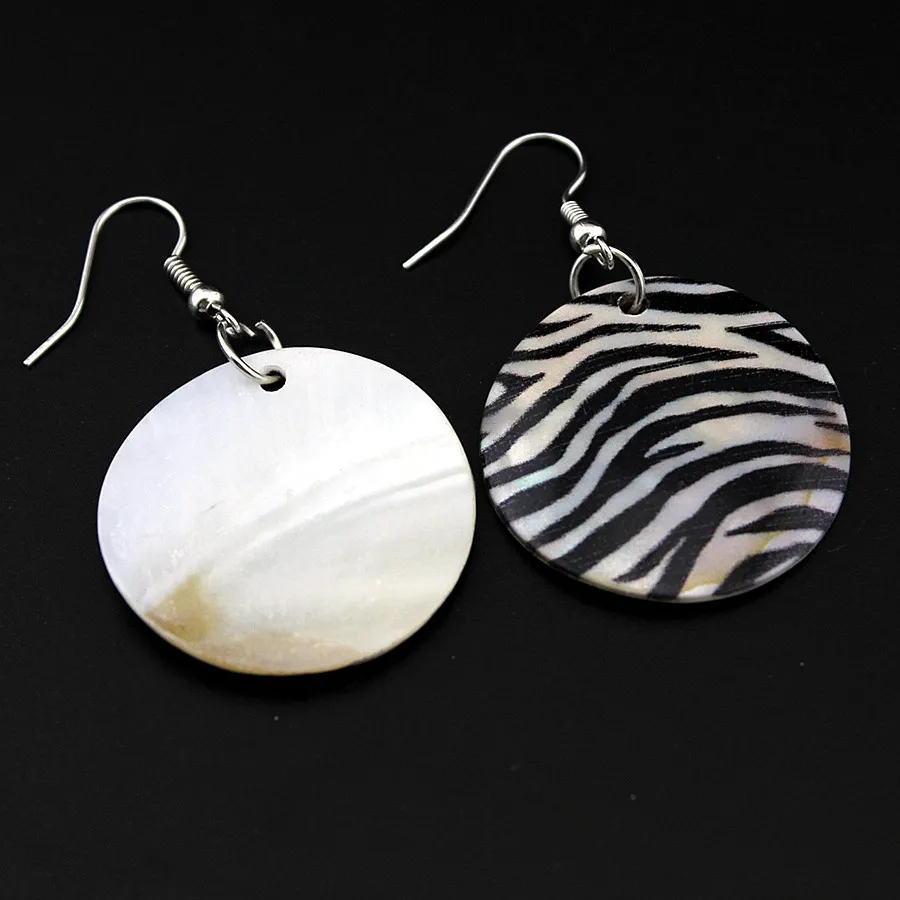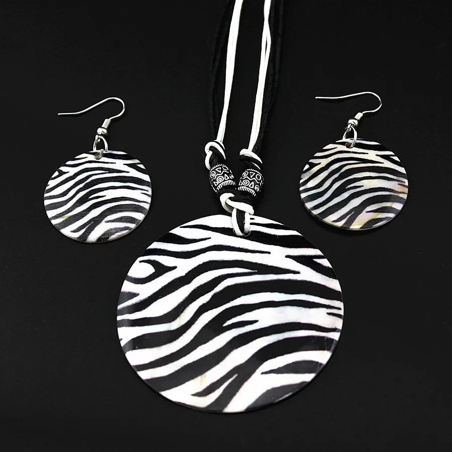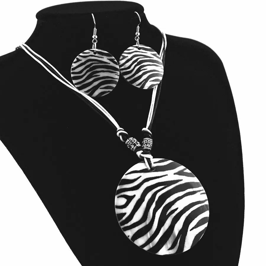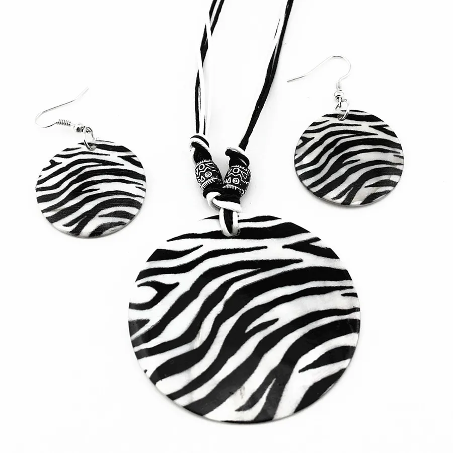 CARTER LISA Boho Shell Disc Pendant Necklace Earrings Set Summer Beach Zebra Print Jewelry Set For Woman