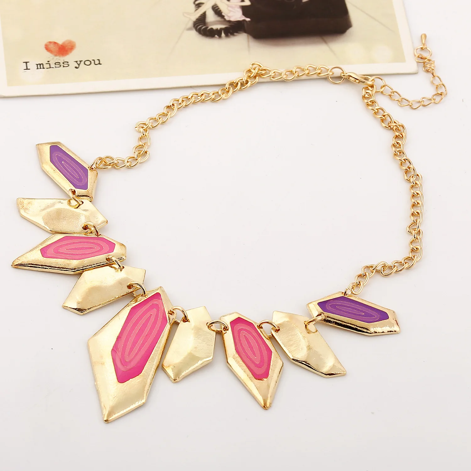 CARTER LISA Fashion Fine Jewelry Geometric Pendant Necklace For Woman Colorful Enamel Multiple Pendant Necklace