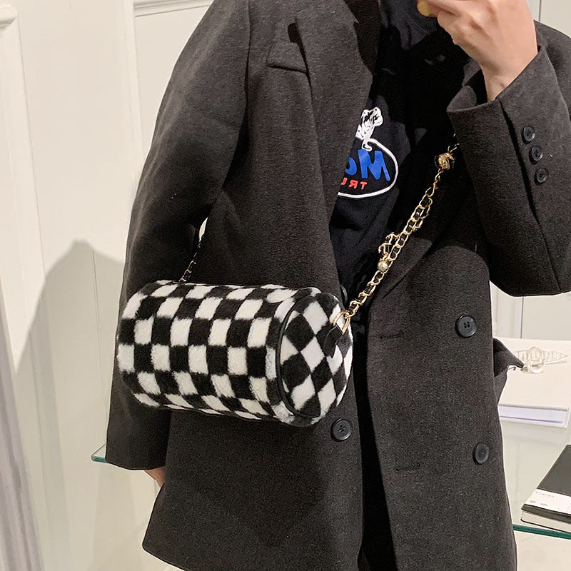 Product Name CARTER LISA Plush Flower Zebra Print Purses Lattice Shoulder Bag For Women Soft Plush Leopard Barrel Handbag