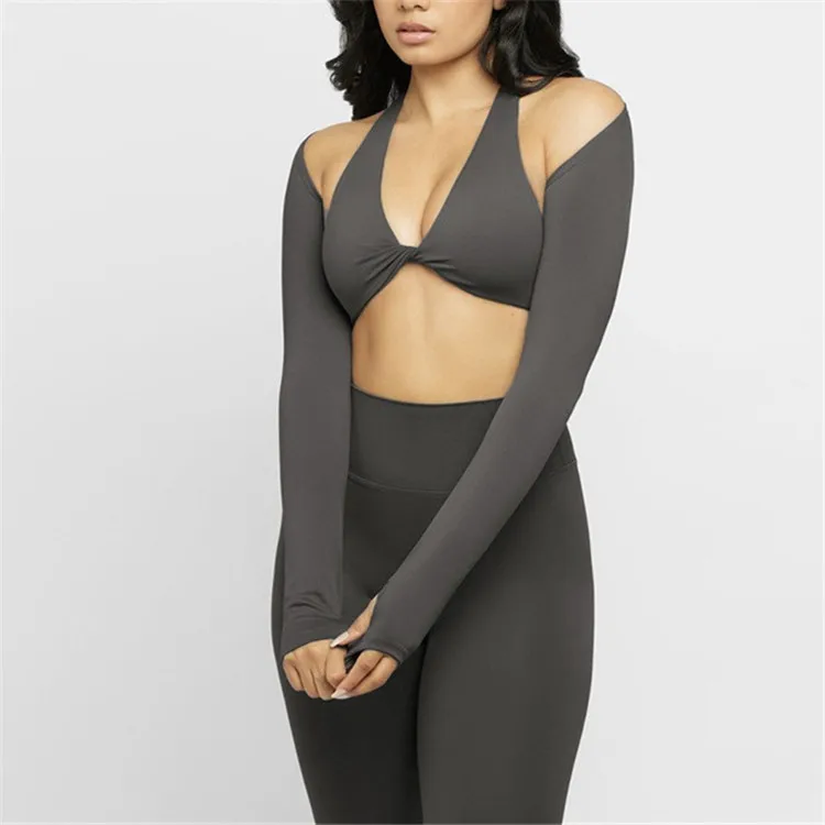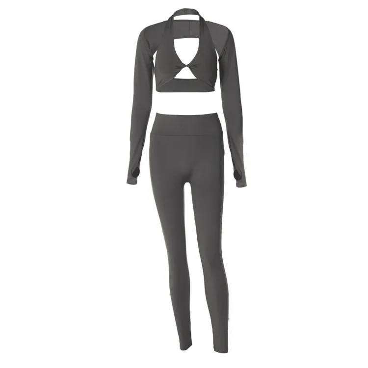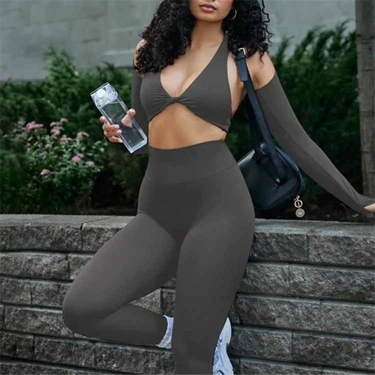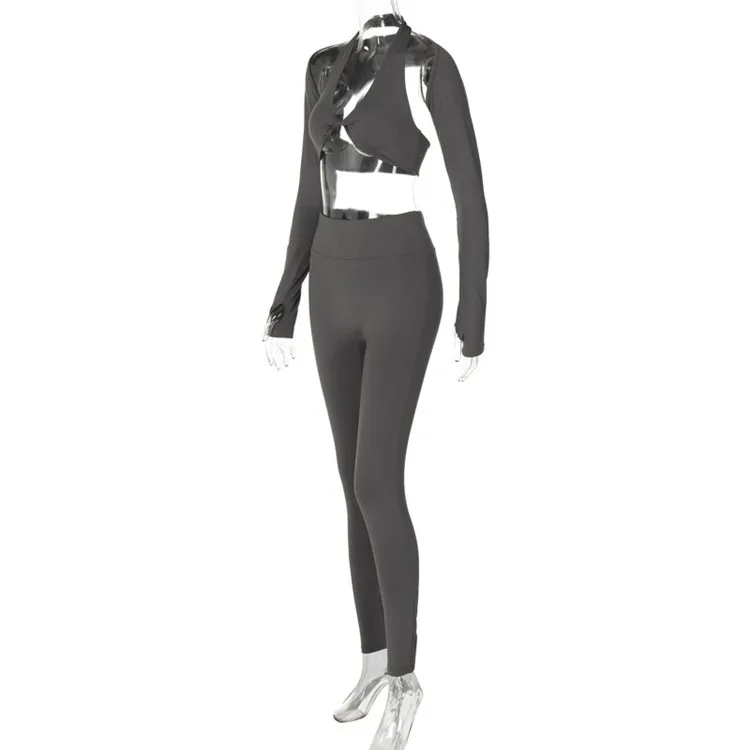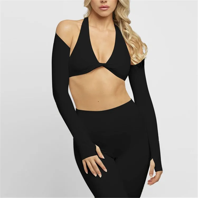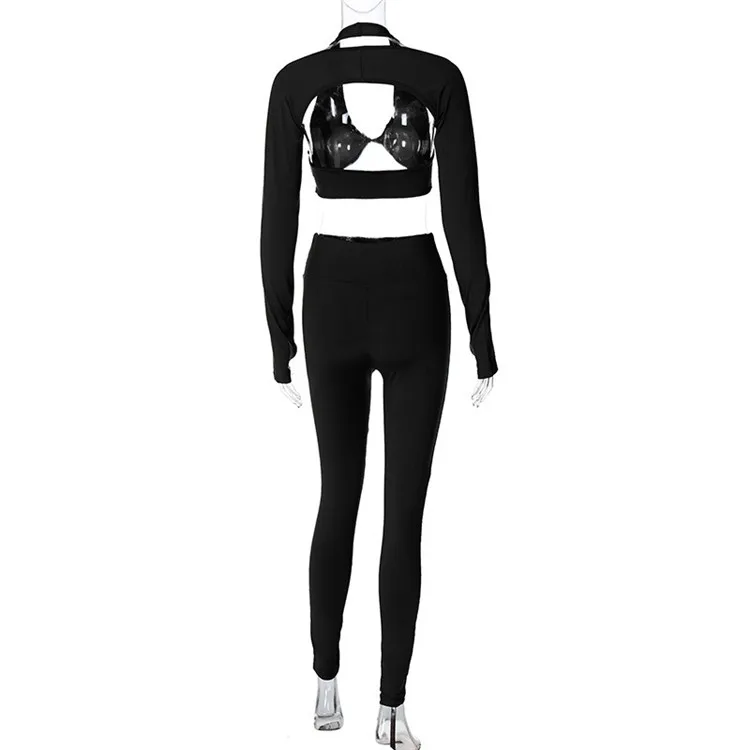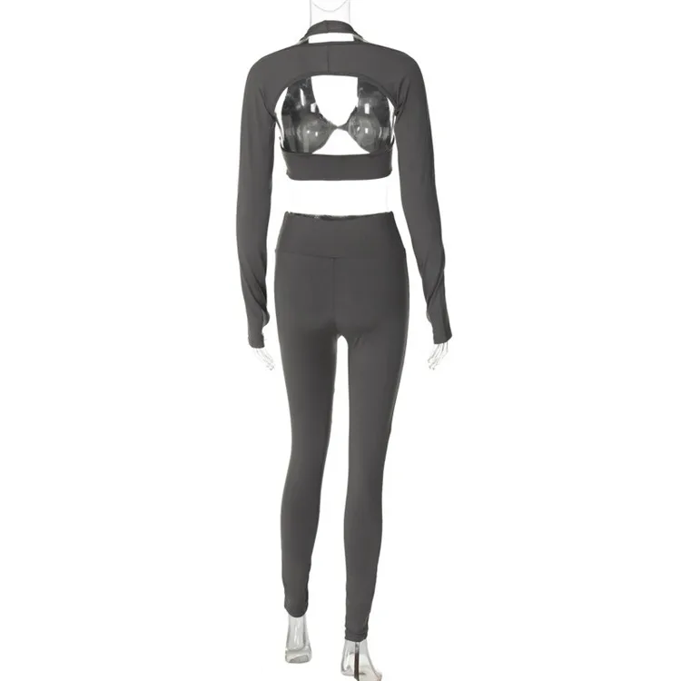 Casual 3 Pcs Sets Solid Backless Sexy Tank Top Long Sleeve Shawl Pants Women Slim Streetwear Sport Tracksuit