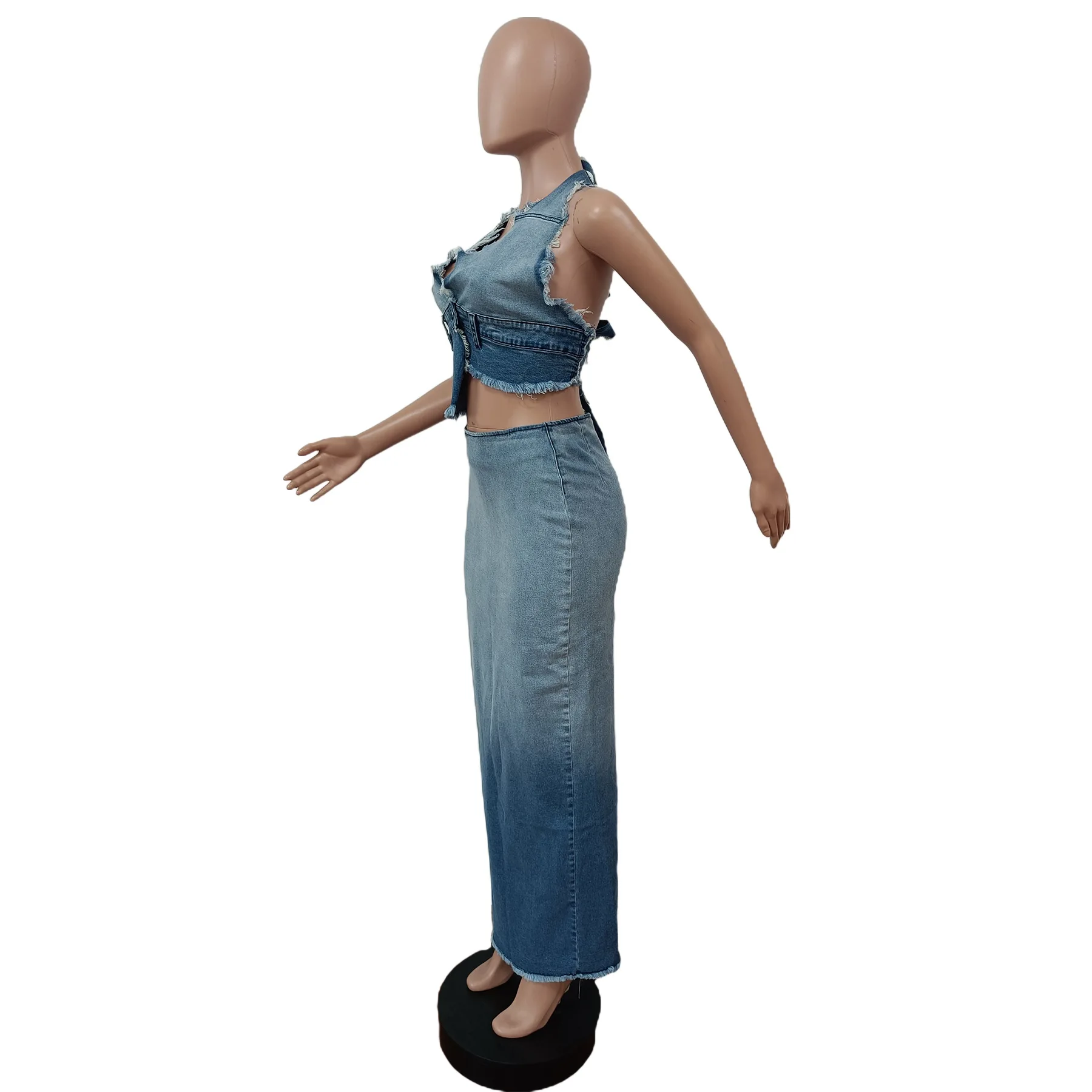 Casual Denim 2 Piece Two Pieces Skirt Bra Top Set for Women Crop Top Skirt Set Woman Two Piece Skirt Jean Set