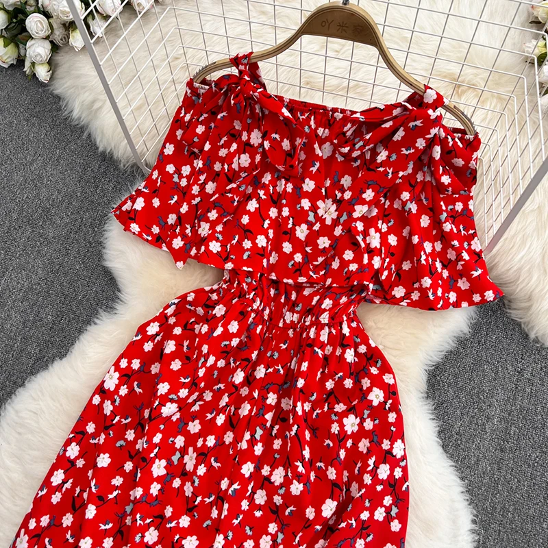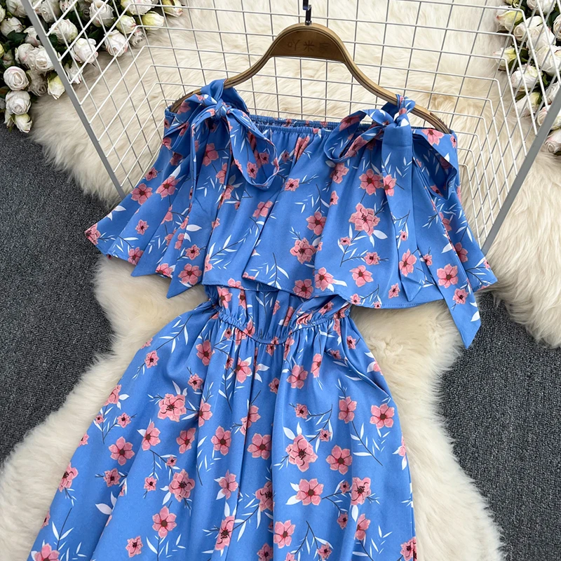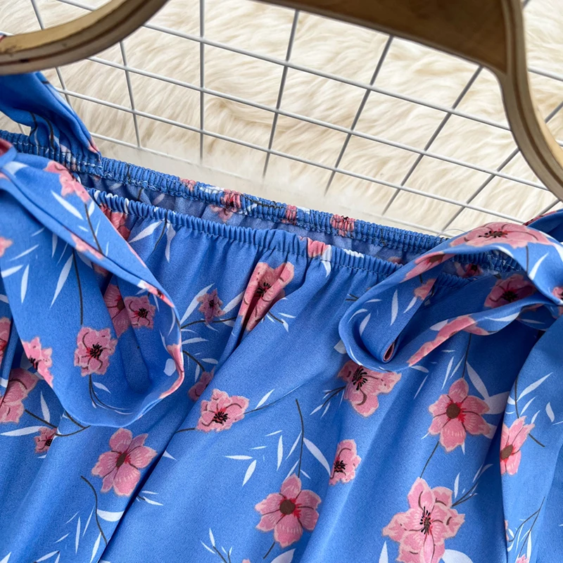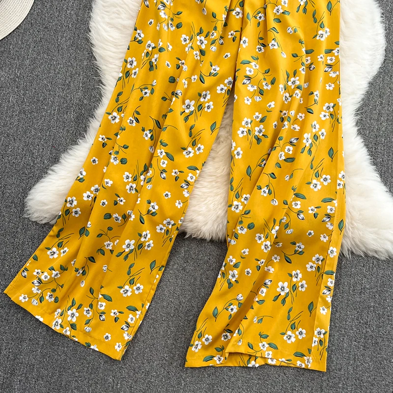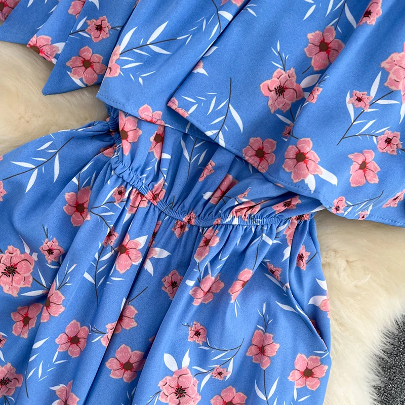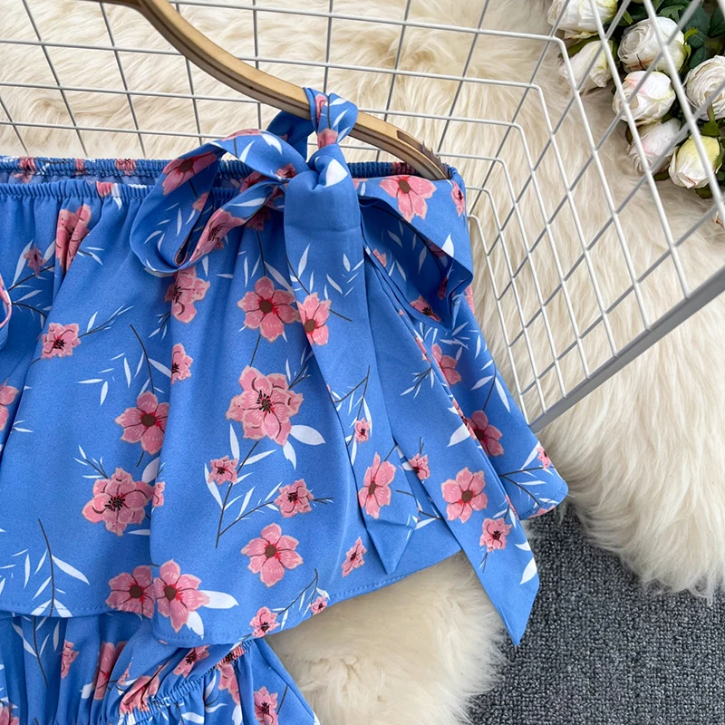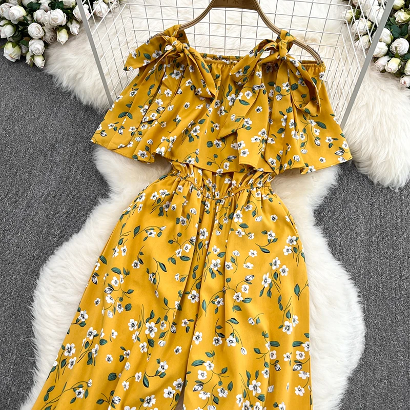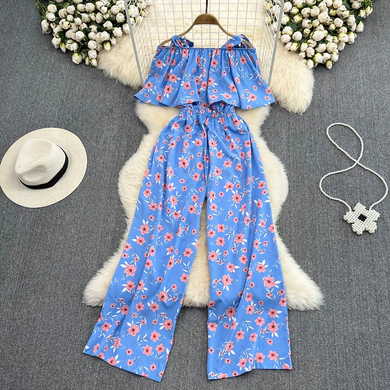 Casual Fashion Slash Neck Jumpsuits Women Floral Printed Lace-up Ruffles Chiffon Wide Leg Pants Female Sexy Casual Playsuits