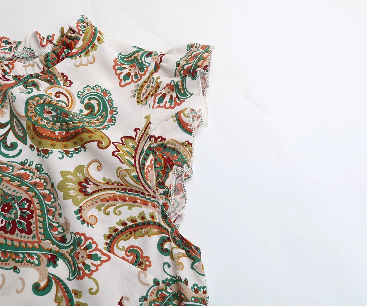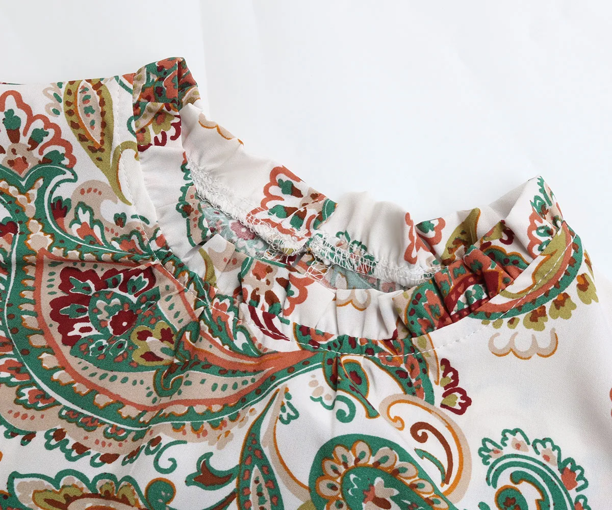 Casual Floral Print Tops Women Outdoor Wear Vintage T-shirt O-Neck
