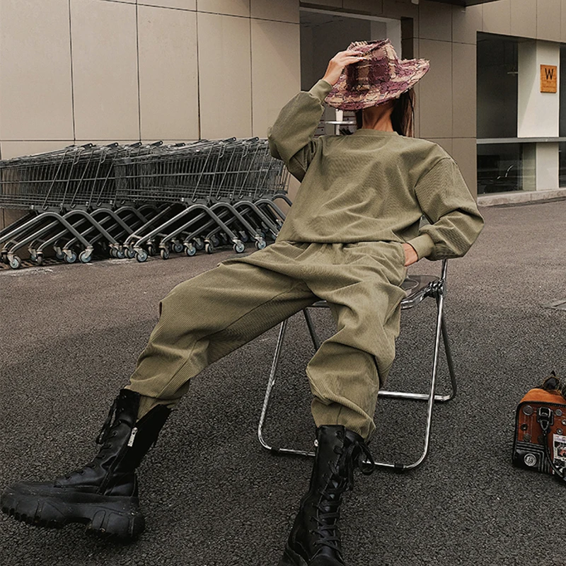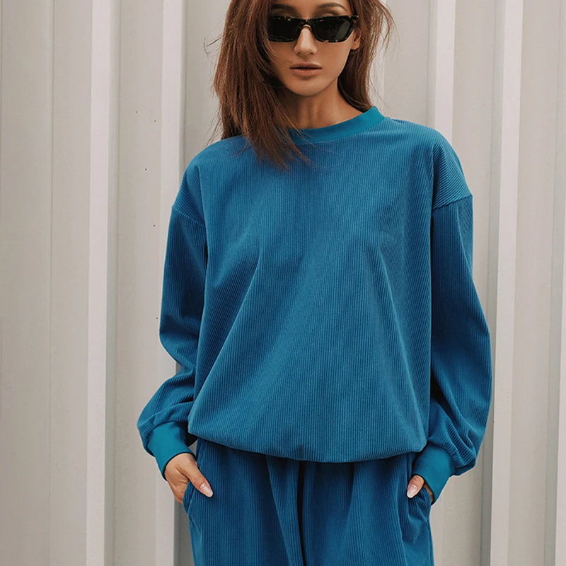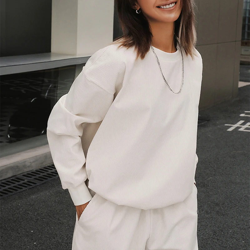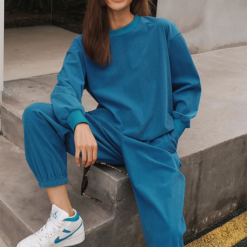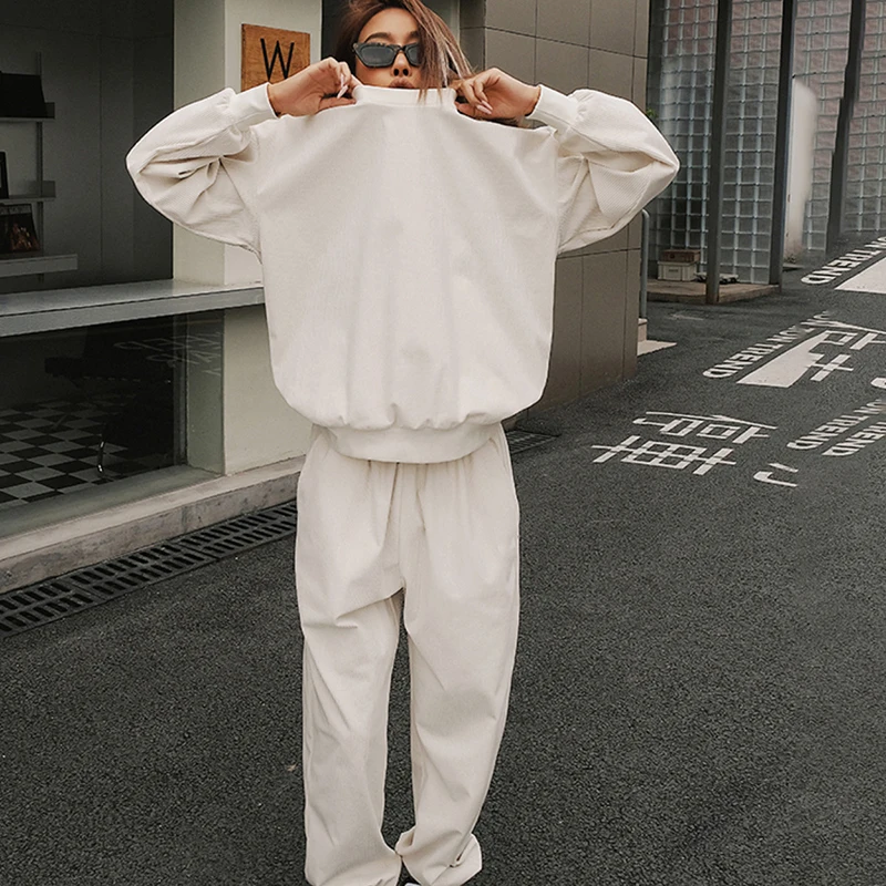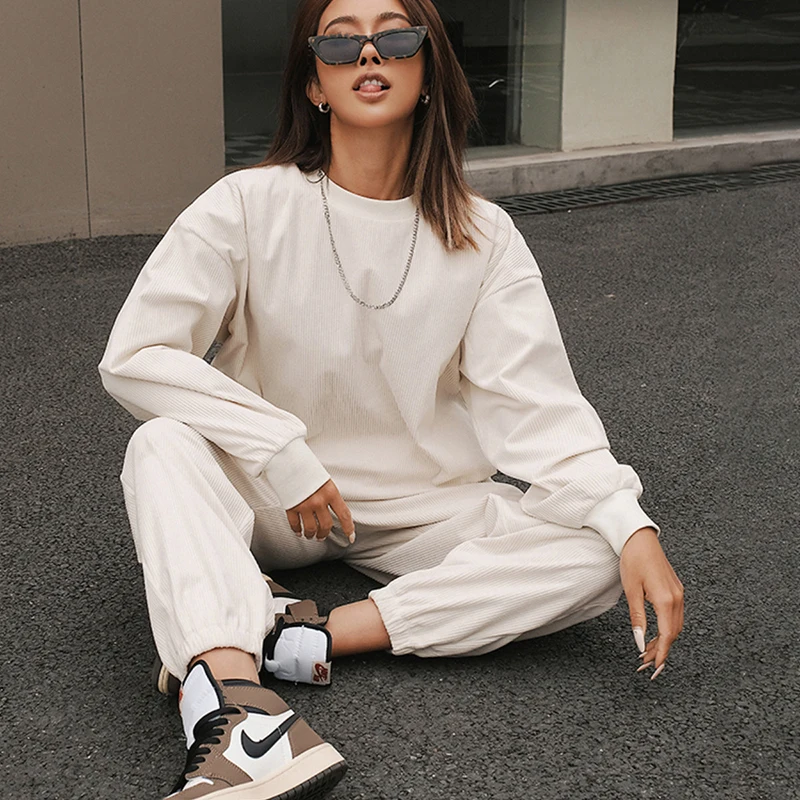 Casual O-neck Sweatshirts Two Piece Sets Women Street Autumn Winter Fashion Hoodies And Pants Tracksuits Female Large Size Set