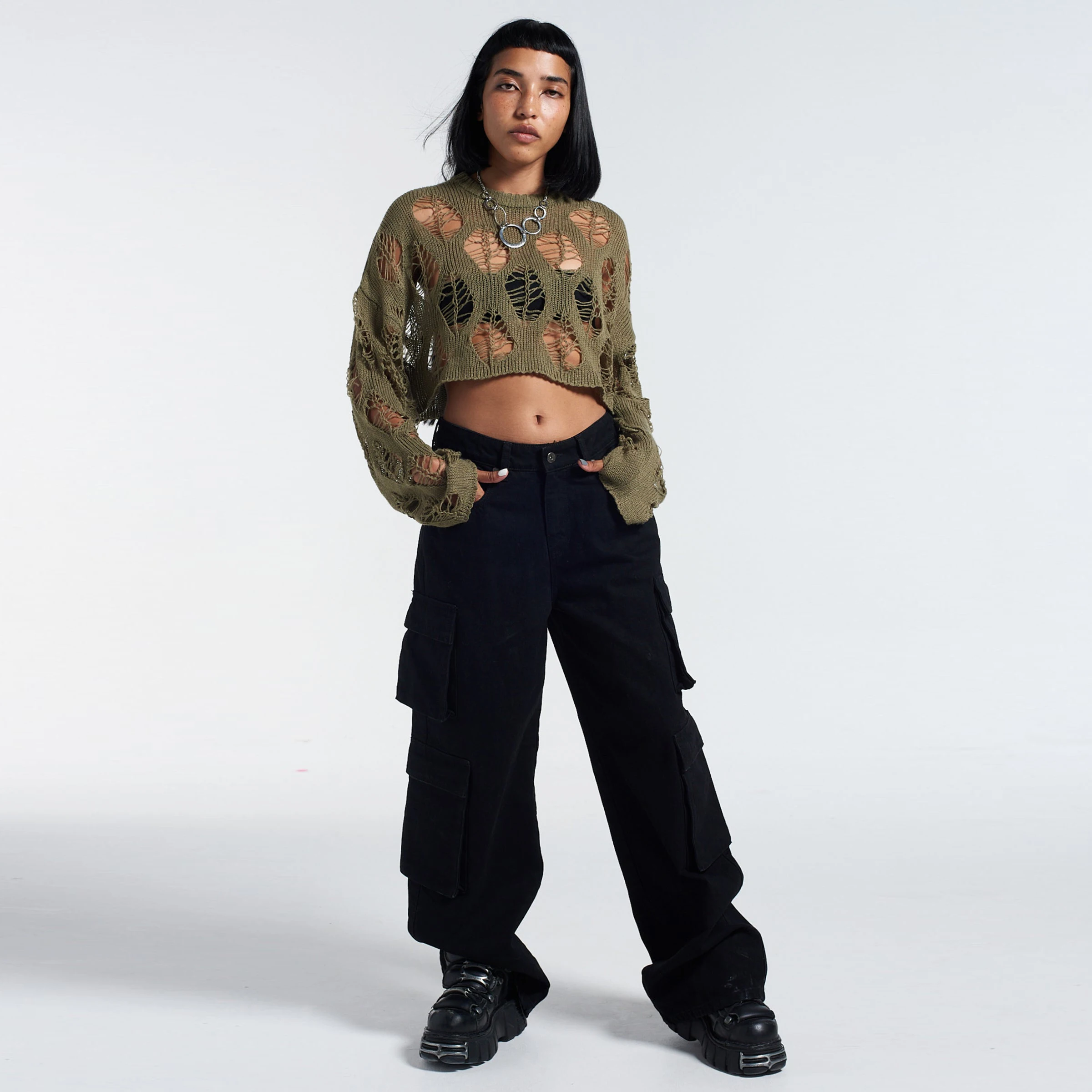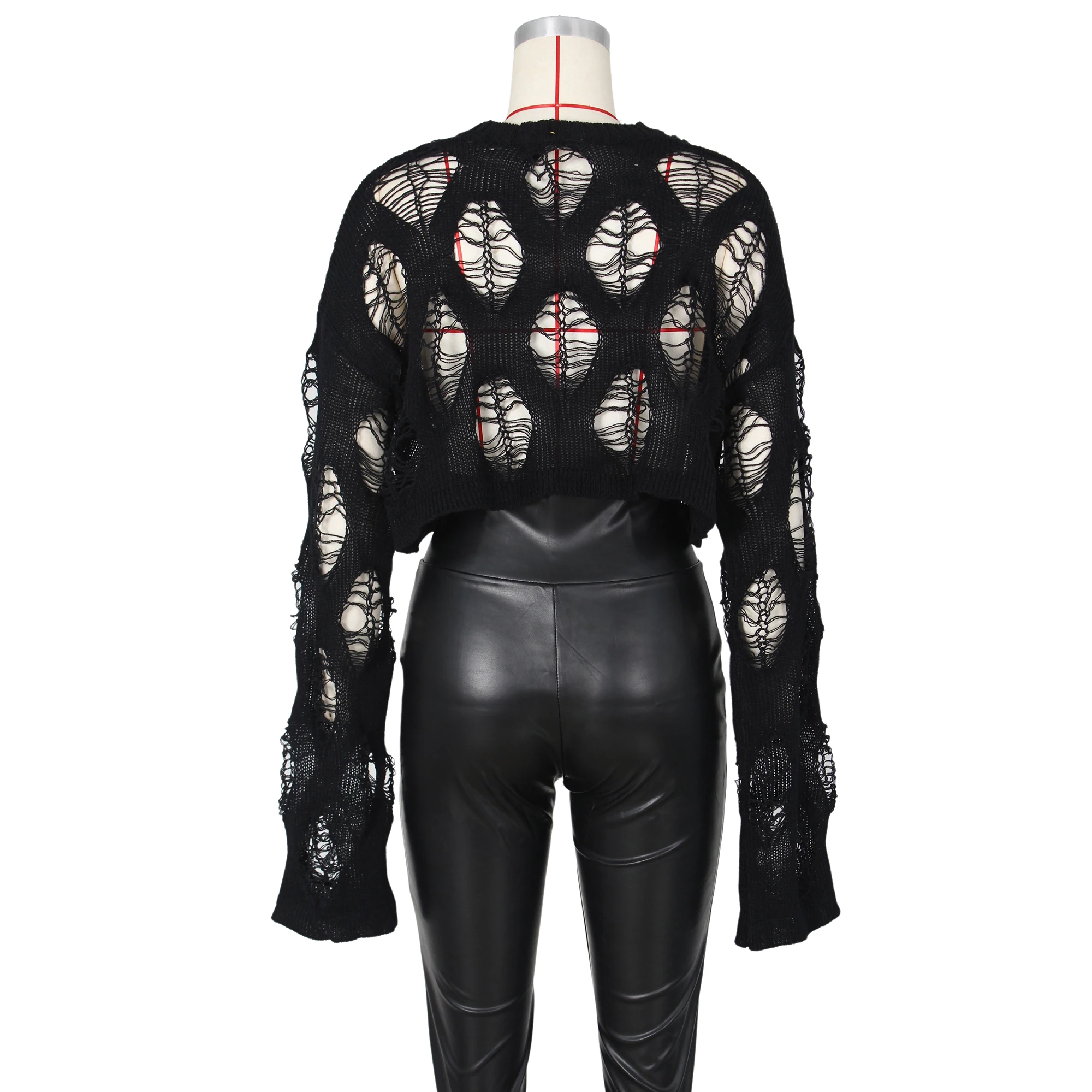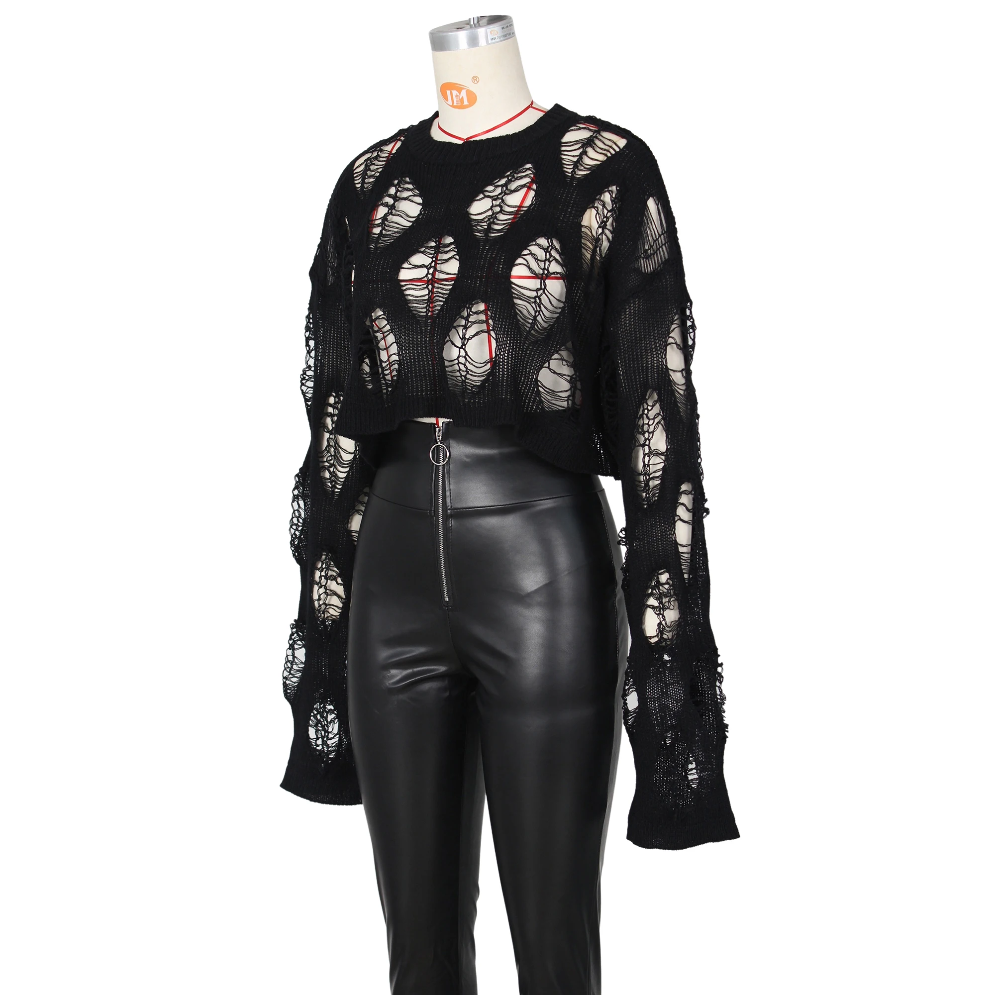 casual pure design women pullover sexy hallow out knitted short top women's sweaters