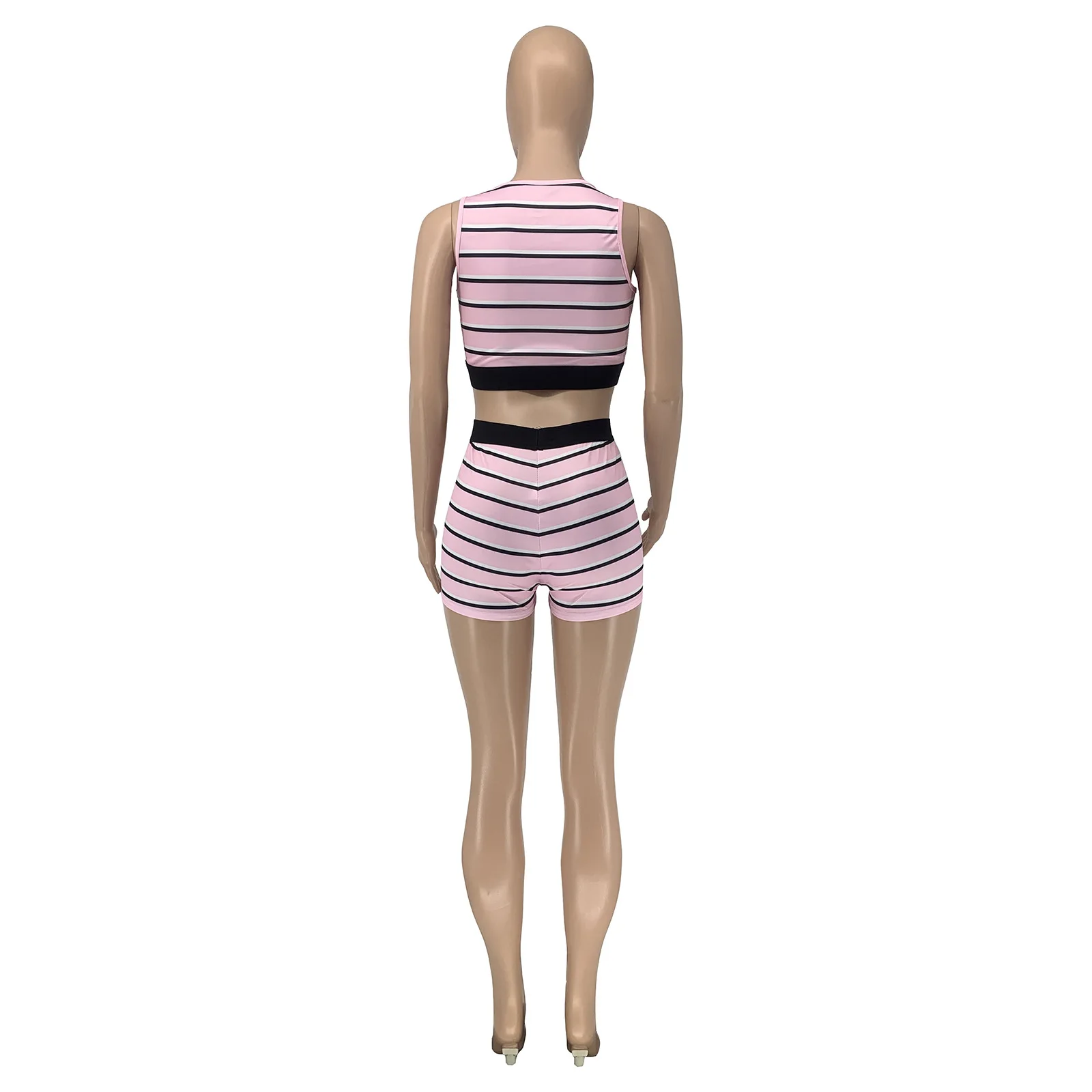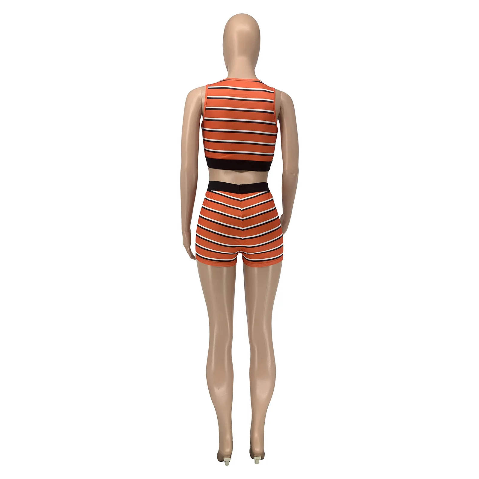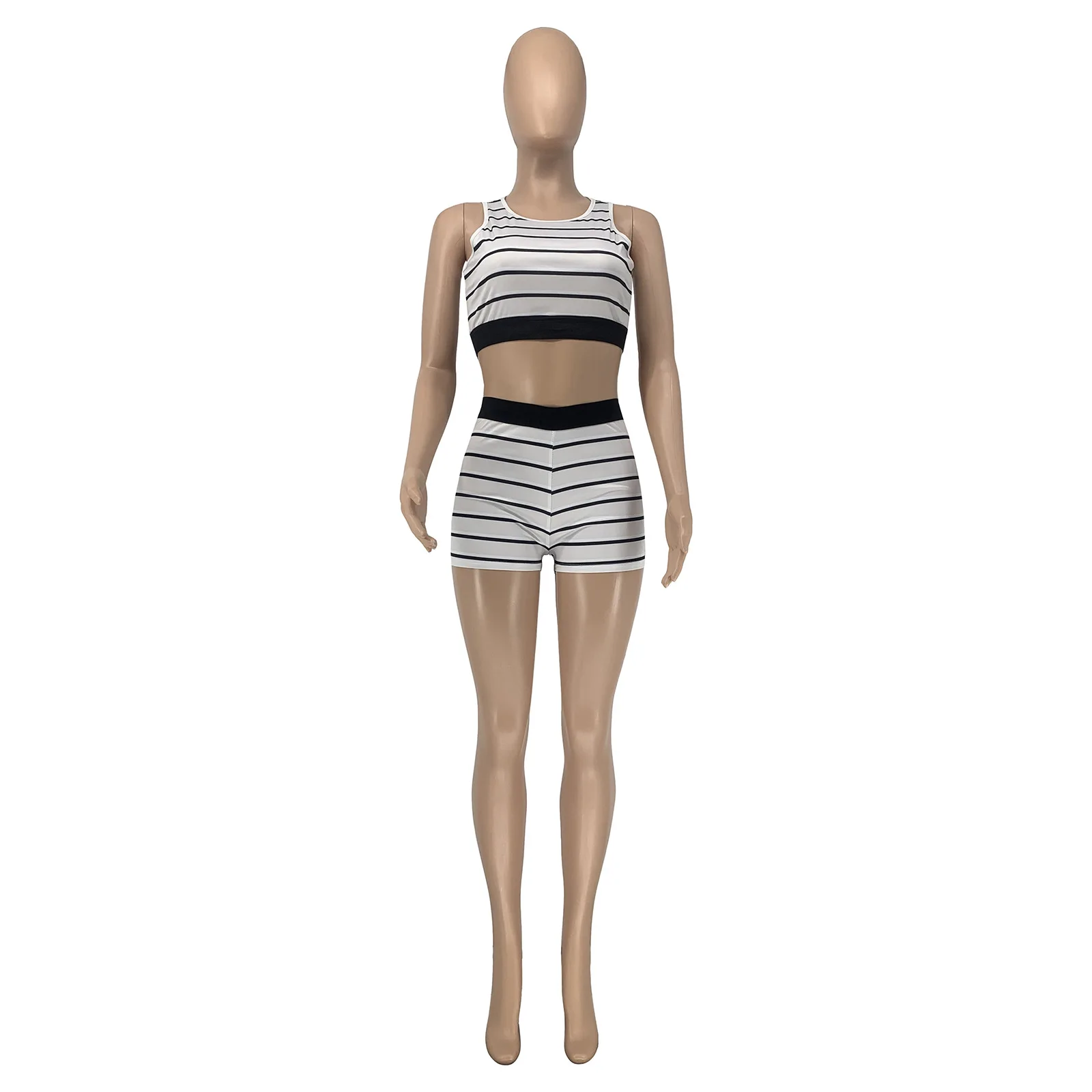 Casual street 2 Piece Crop Top and Shorts Women Sets Striped Ladies Shorts and Top Set Tank Top and Spandex Shorts Set