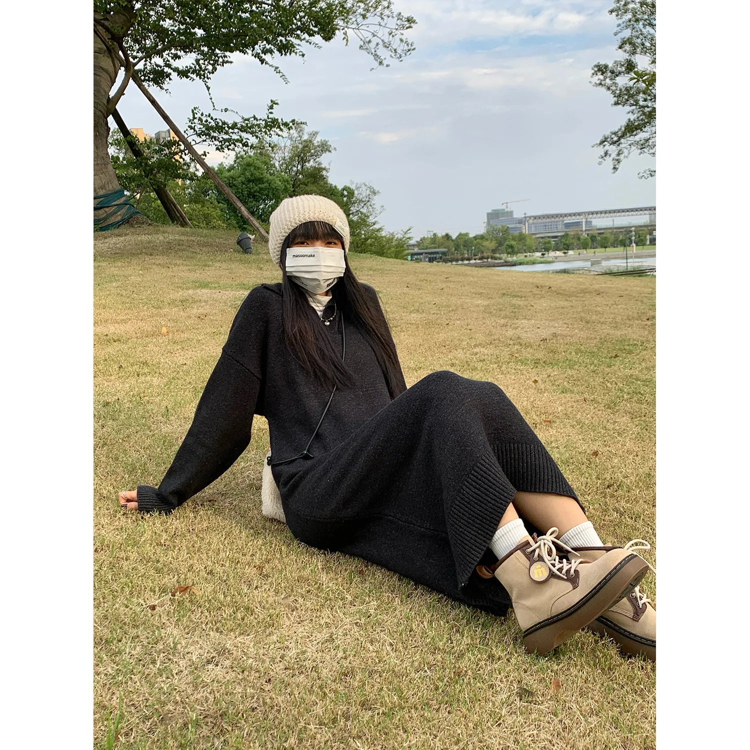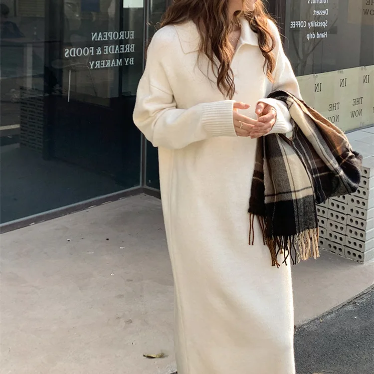 Casual Thicken Warm Loose Sweater Dress Women Autumn Winter Lapel Full Sleeve Solid Long Knitted Dress Female vestidos