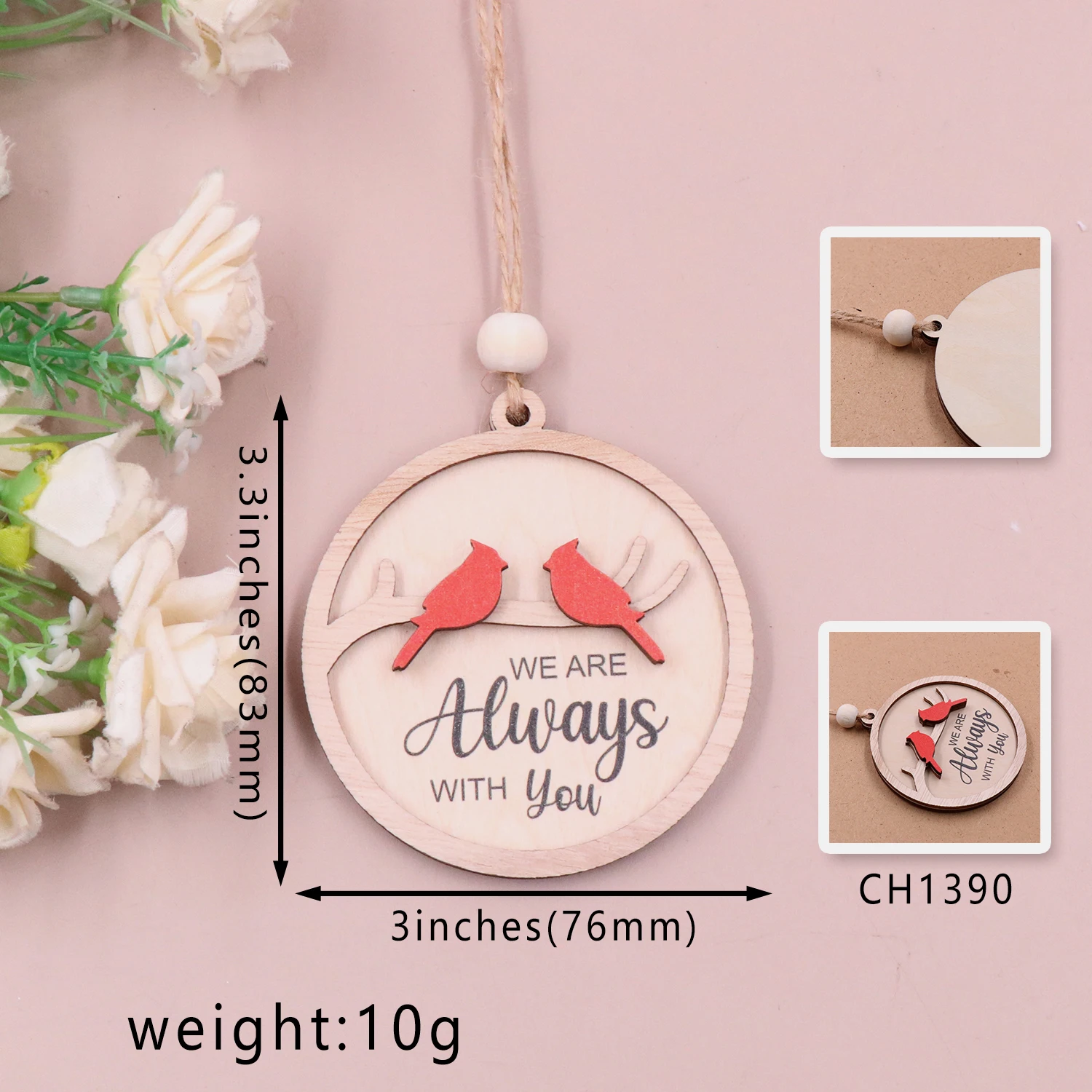 CHA241CH1390 1piece- We Am Always With You | Cardinal Memorial Christmas Tree Ornament Bauble W/strings beads 3inches Wide