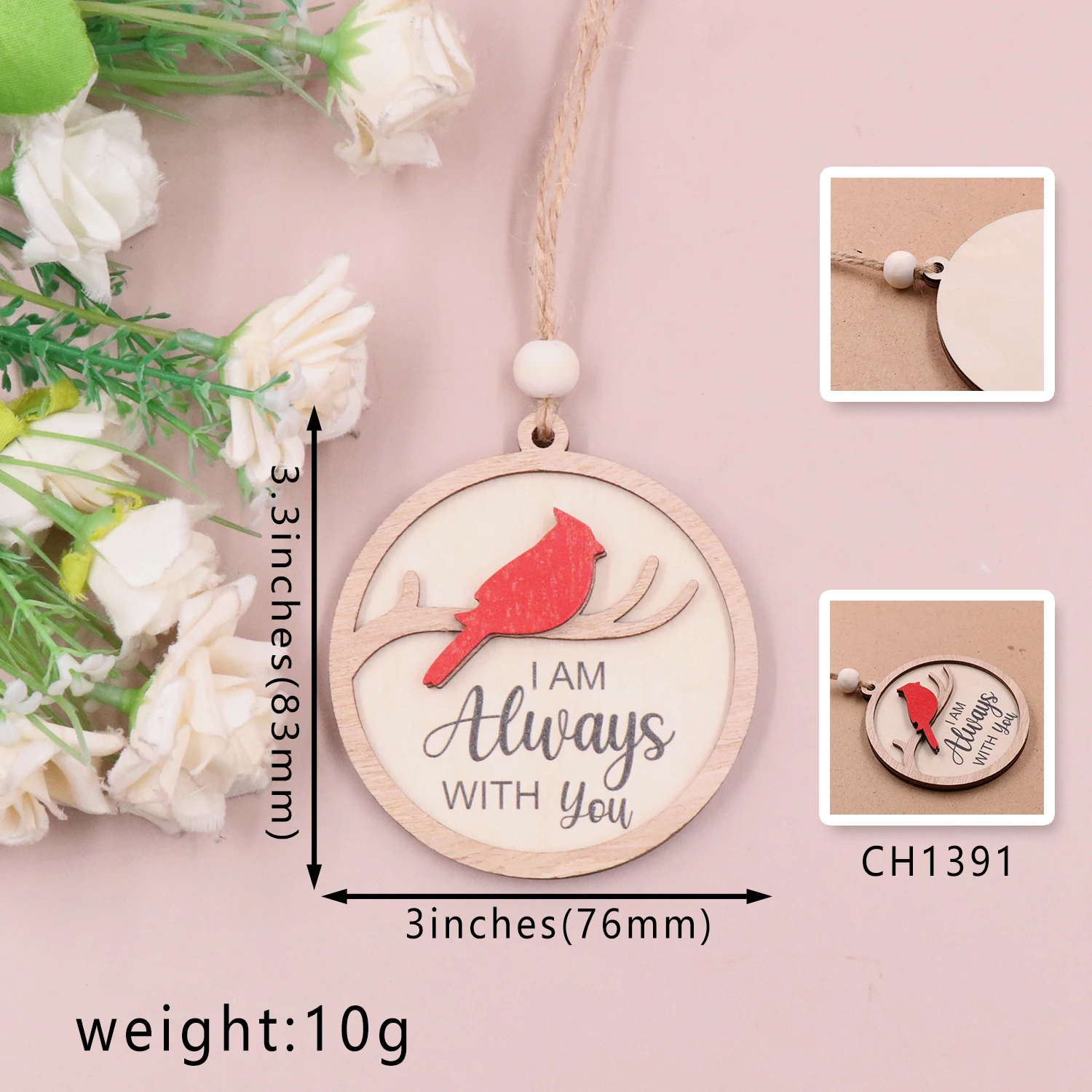CHA242CH1391 1piece-I Am Always With You | Cardinal Memorial Christmas Tree Ornament Bauble W/strings beads 3inches Wide