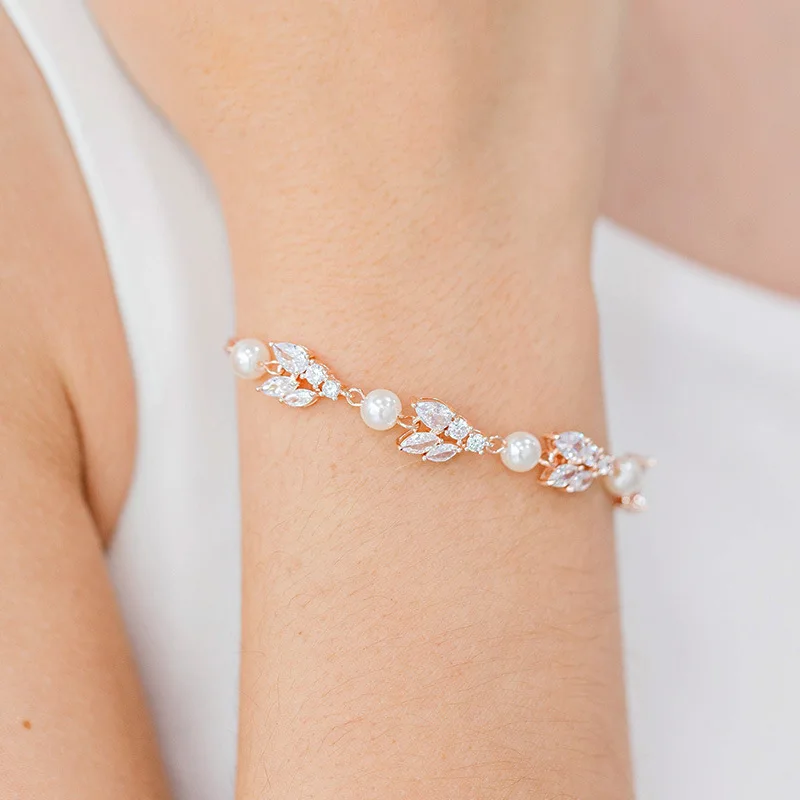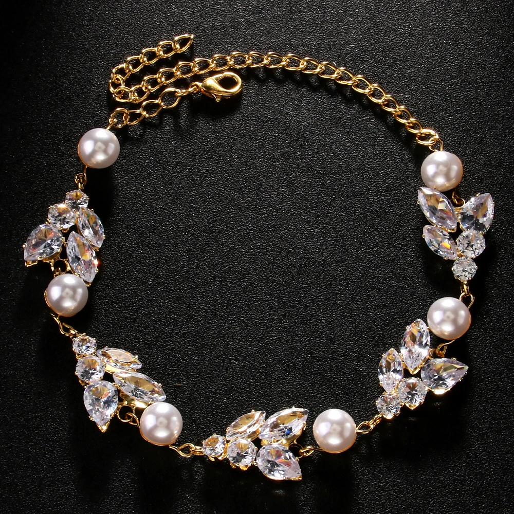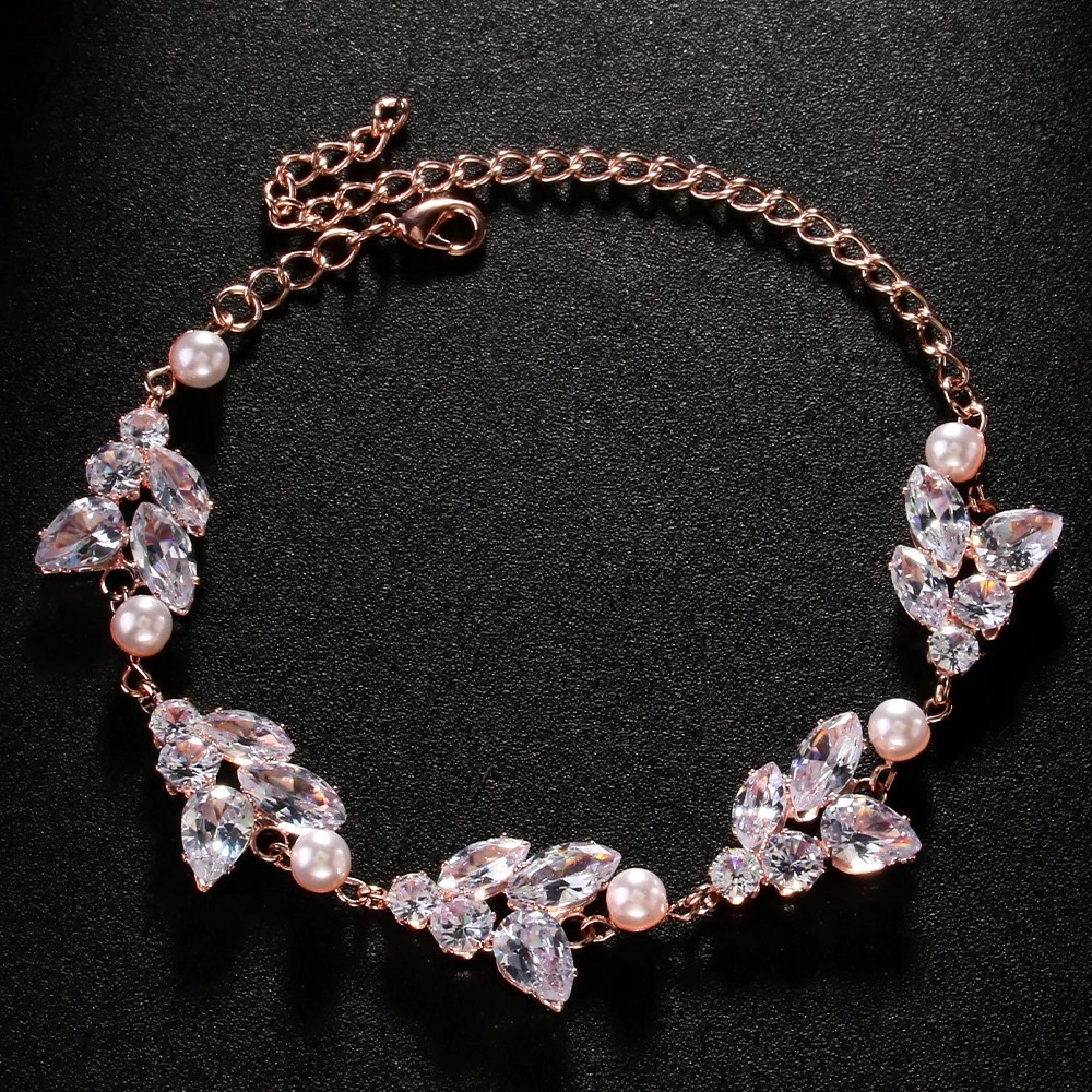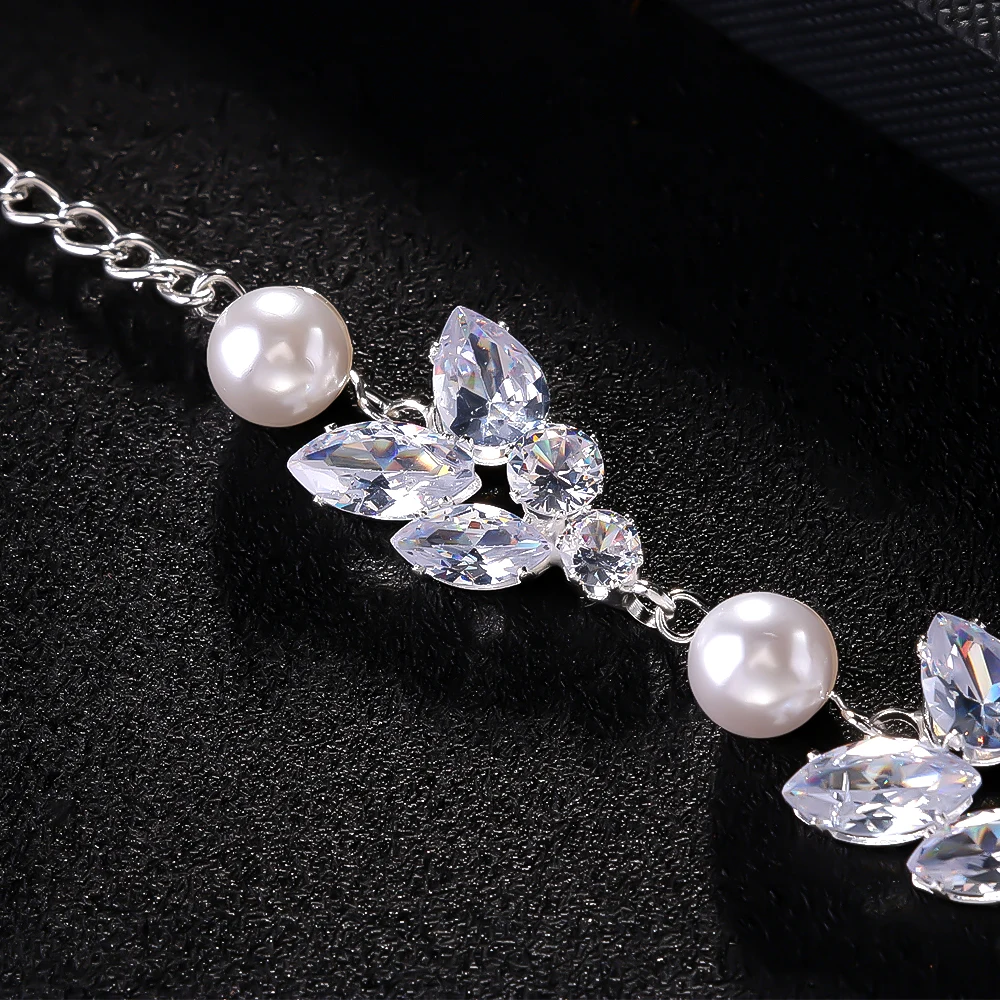 Charm Beautiful White Pearl Leaf Rhinestone Bracelet Jewelry Women Girls Wedding Bridal Crystal Adjustable Bracelet Bangle Chain