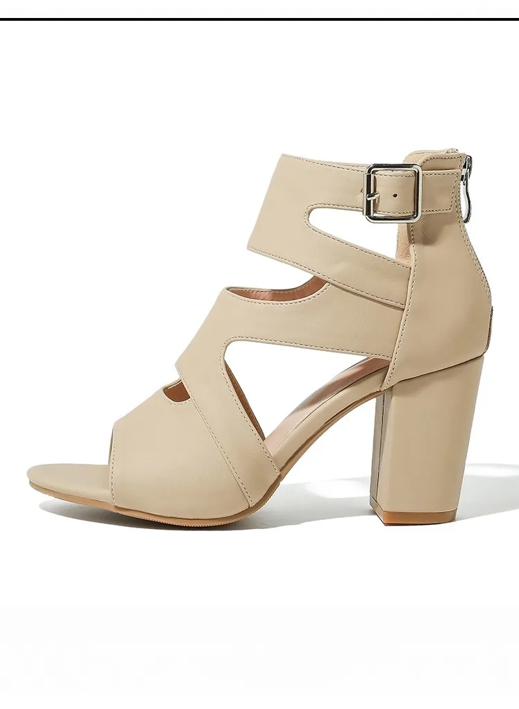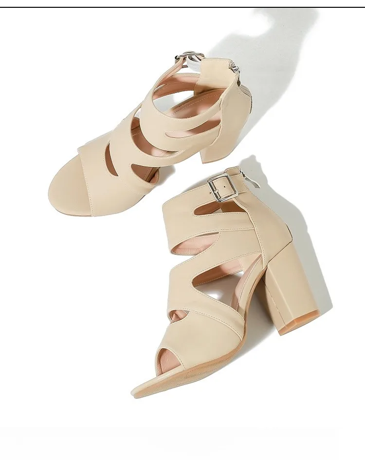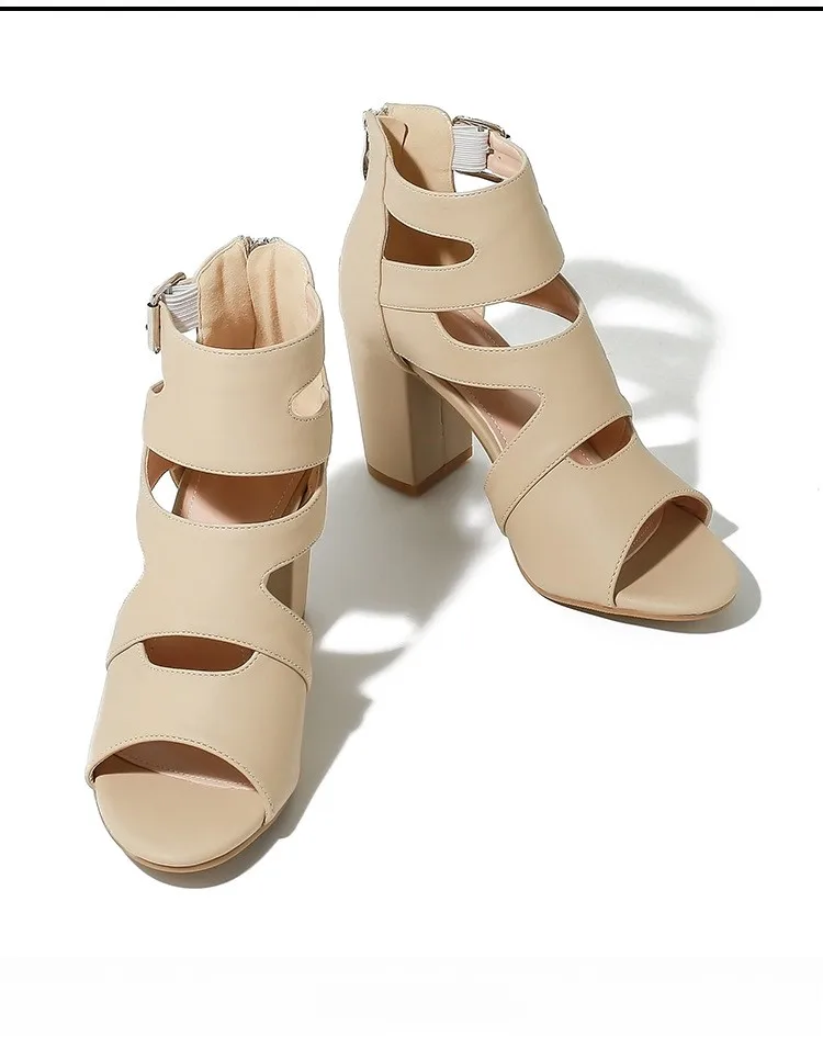 Chaussures Femme Sexy Apricot Large Size Romen Mujer Shoes Slip-toe Zippers High Heels Sandals For Ladies Nightclub Party Sandal
