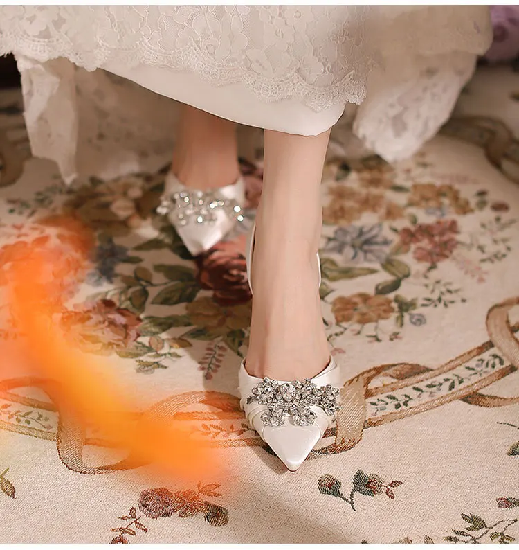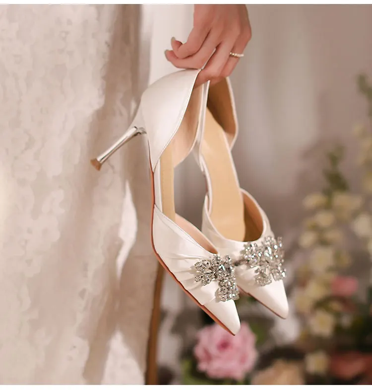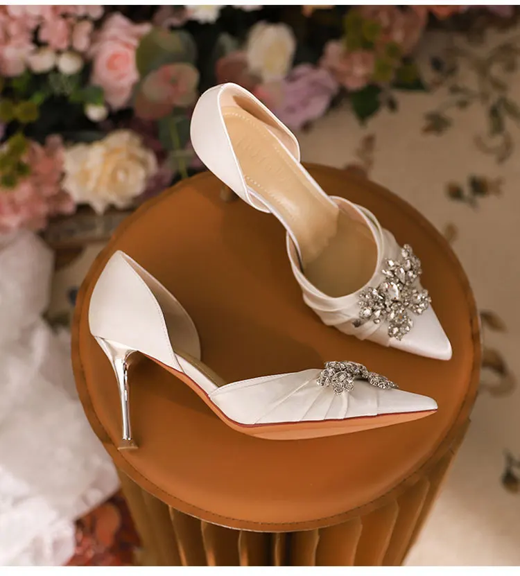 Chaussures Femme Versatile Silk Satin Pointed-toe Mujer Shoes Wrap-toe Hollow Out High Heel Sandals Ladies Banquet Dress Sandals