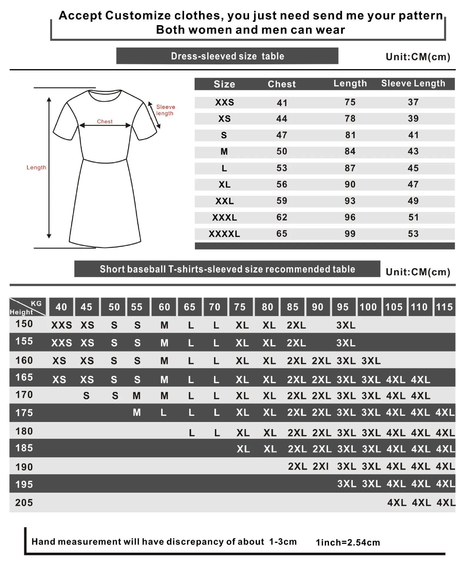 Note: Please understand that there will be an error of 1-2 cm when making clothes by hand!