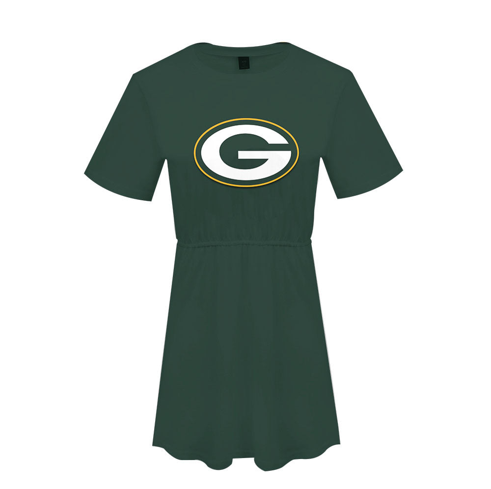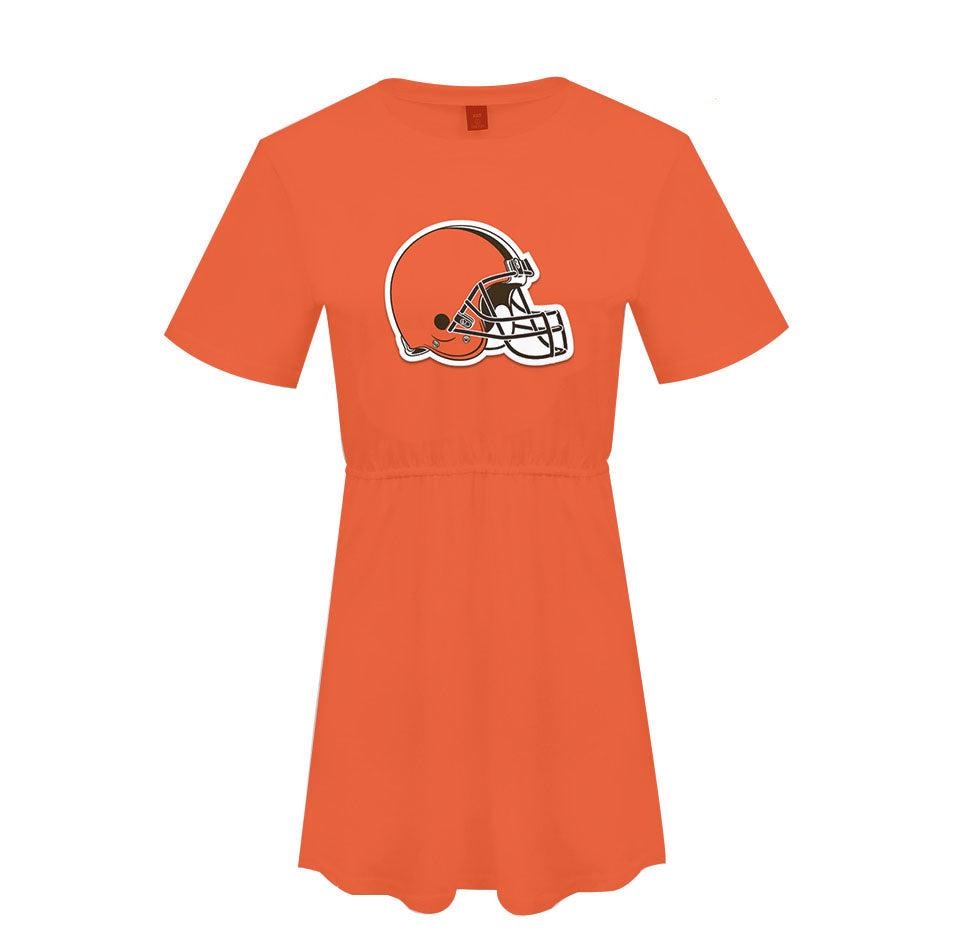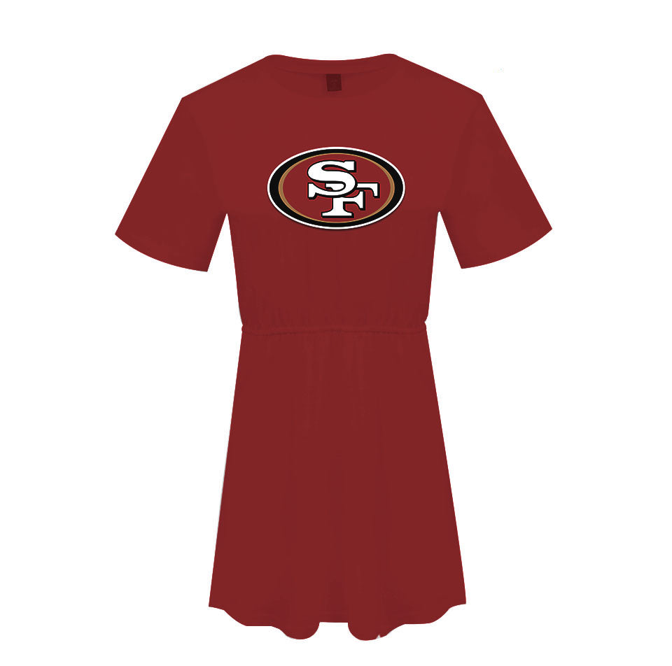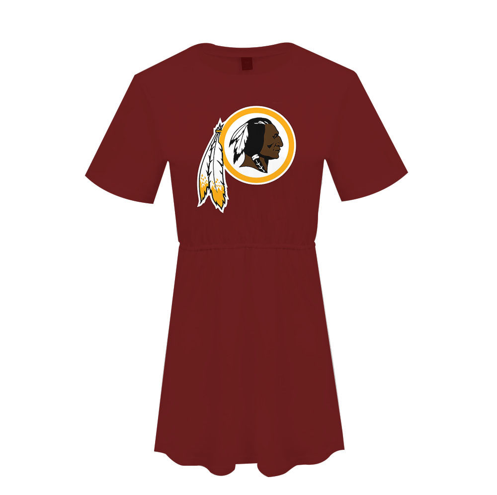 cheap casual women dress custom nfl print polyester plus size dress comfortable loose t shirt ladies leisure dresses