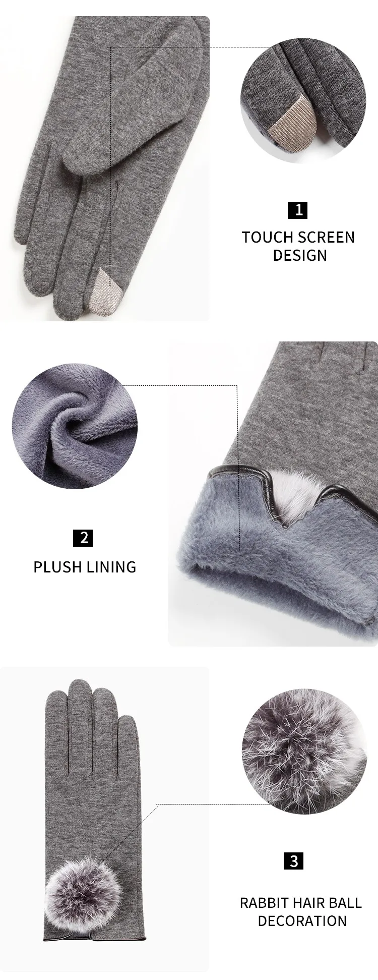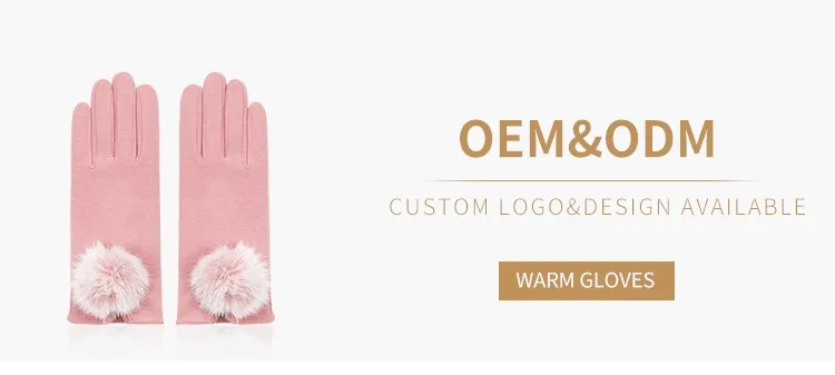 Cheap daily life cute red warm touch screen rabbit fur ball riding women winter gloves