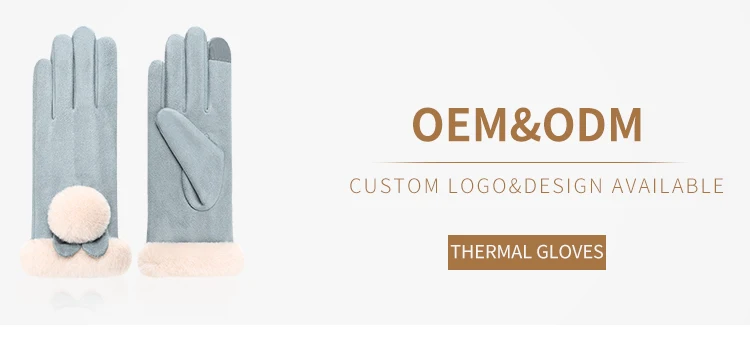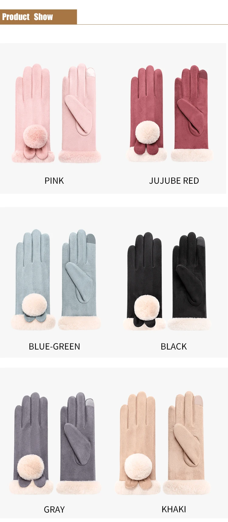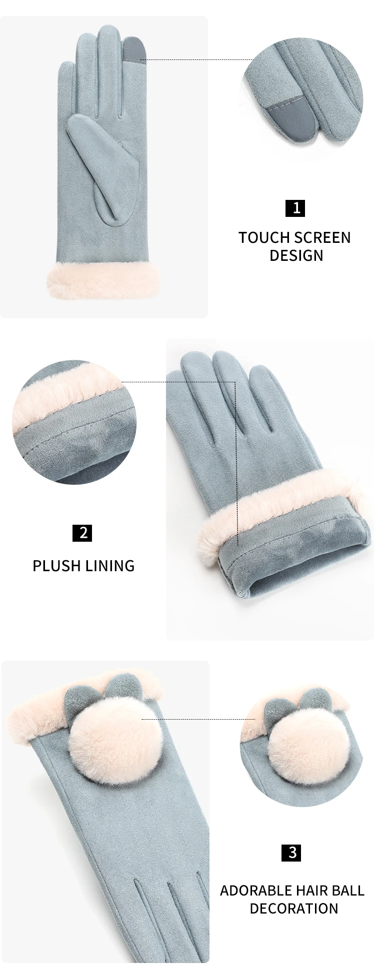 Cheap lovely ball warm winter lady suede fabric fancy girls gloves touch screen