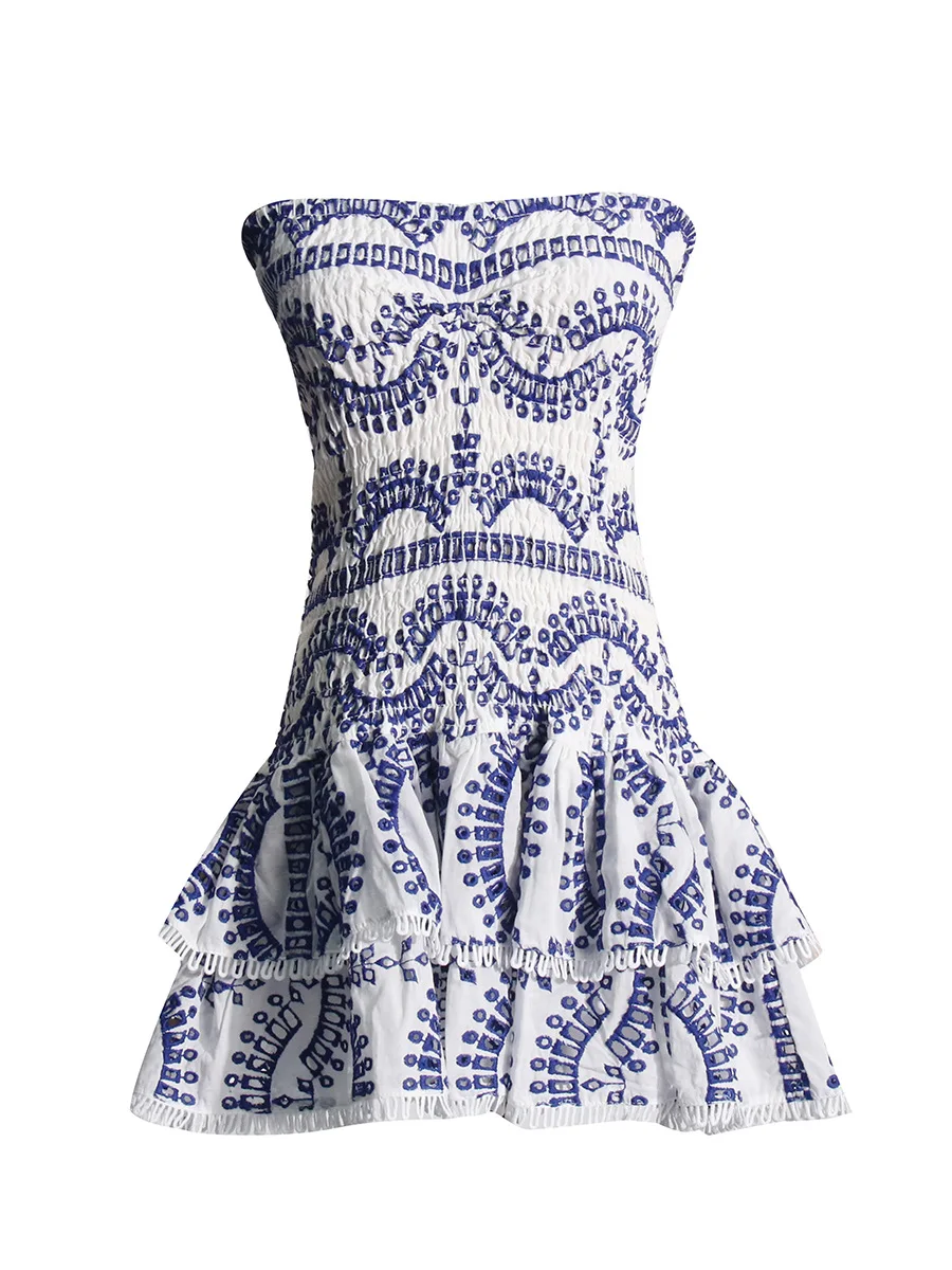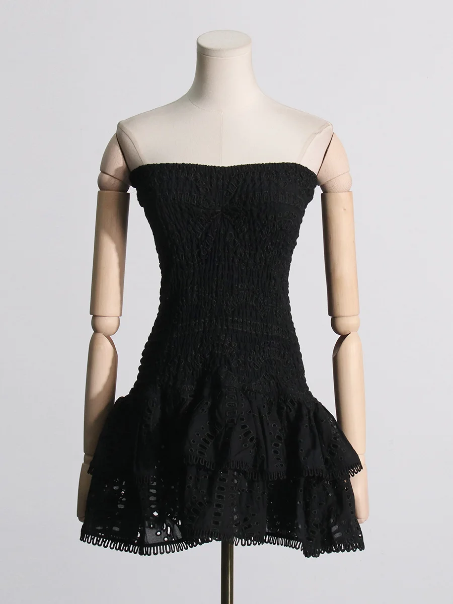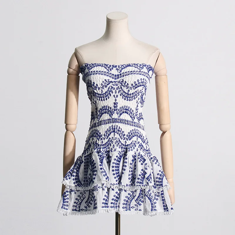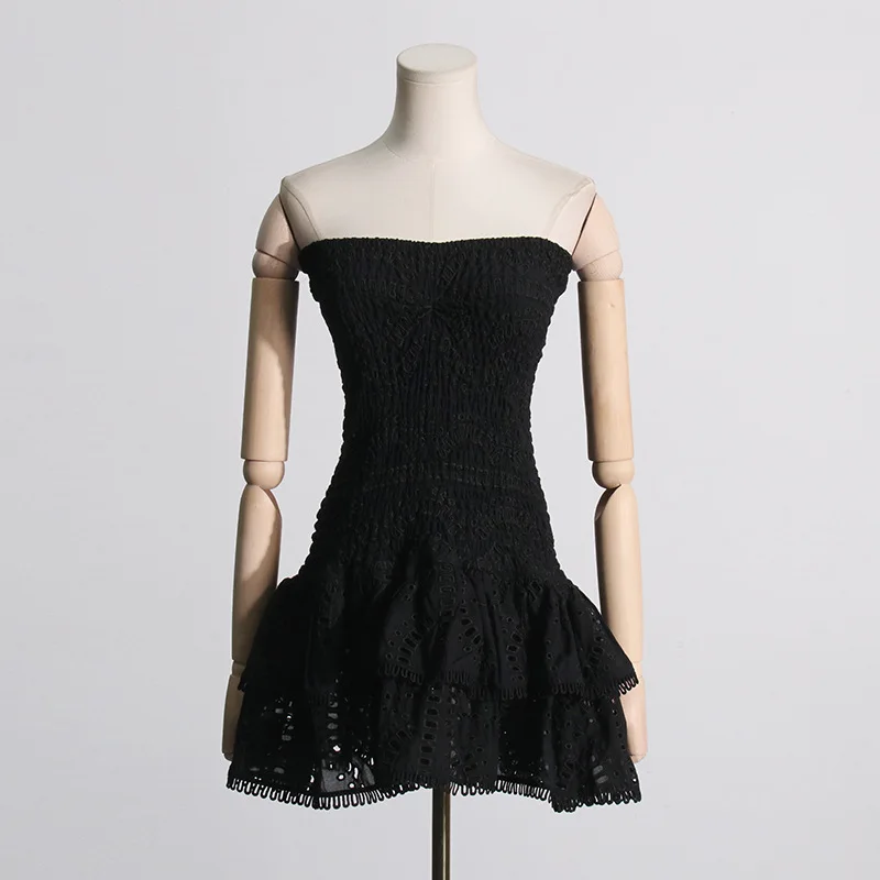 CHICEVER Elegant Dresses Casual Strapless Sleeveless High Waist Spliced Ruffles Hem Women Cotton Mini Summer Dress Woven Simple
