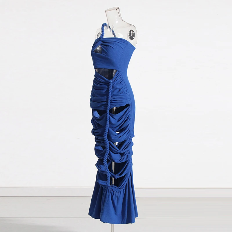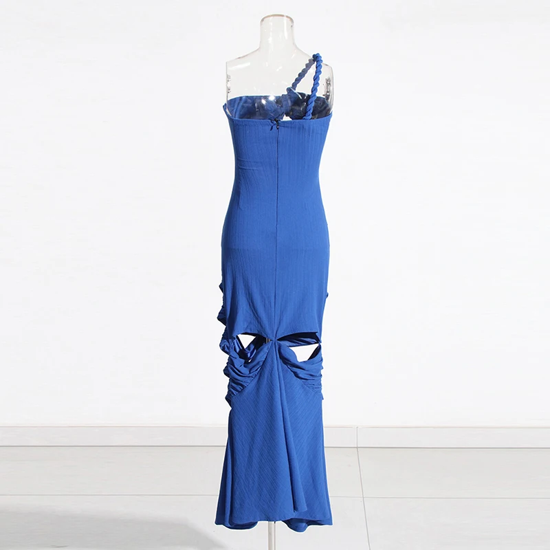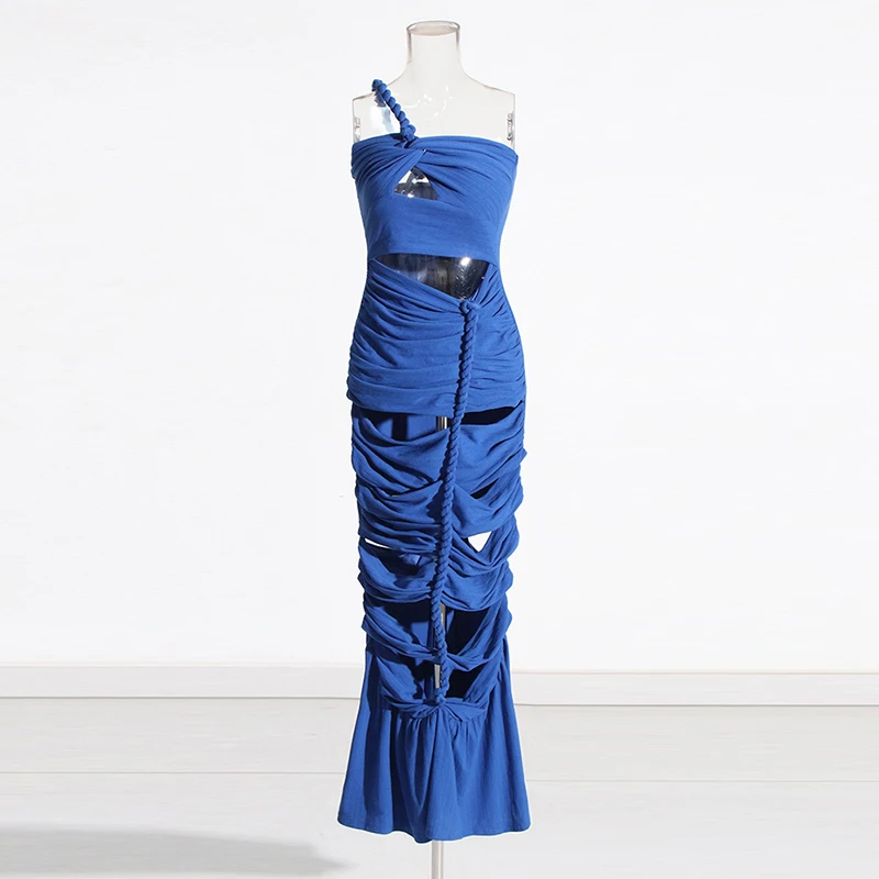 CHICEVER Elegant Lady Diagonal Collar Sleeveless High Waist Long Dresses Women Dress 2023