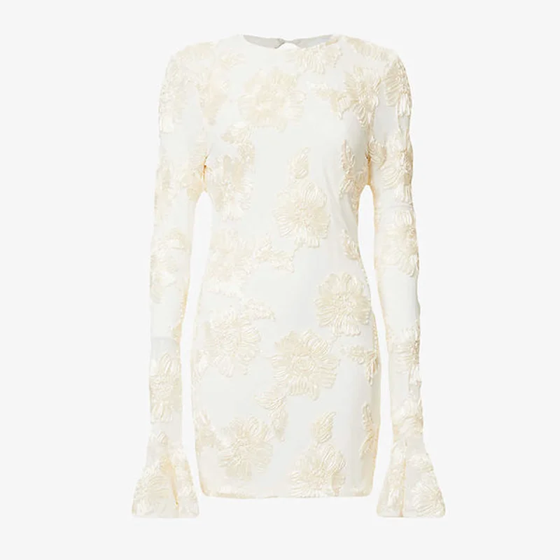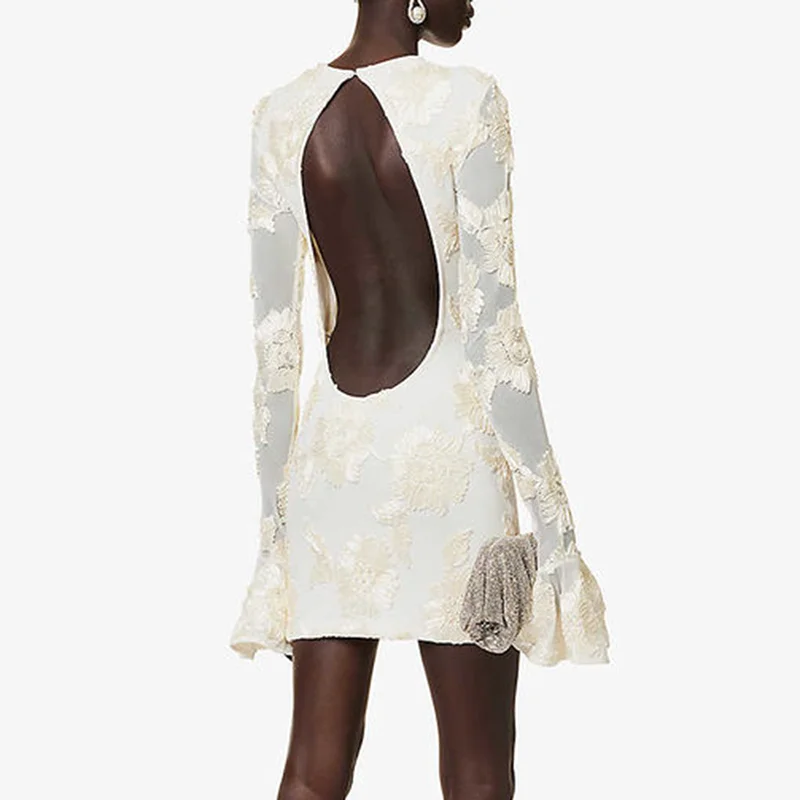 CHICEVER Round Neck Flare Sleeve High Waist Patchwork Jacquard Solid A Line Lady Elegant Dresses Dress For Women
