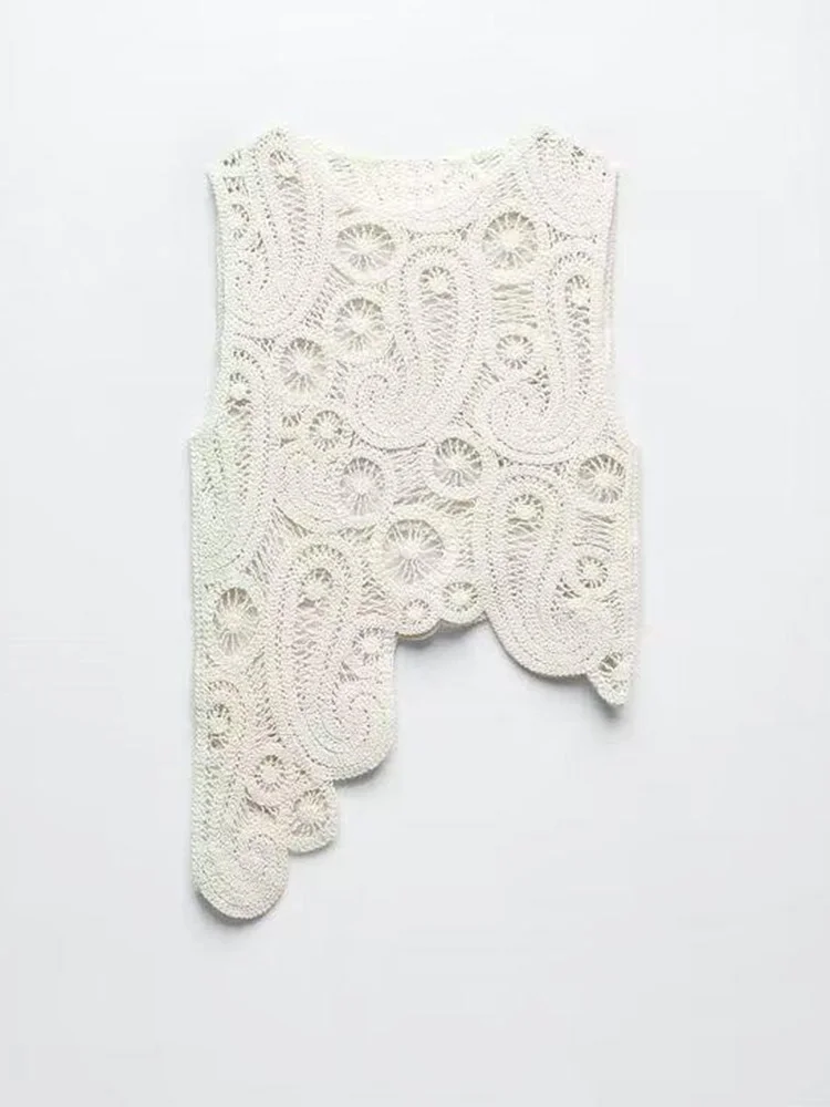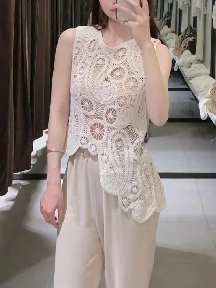 CHICEVER Round Neck Sleeveless Cold Shoulder Irregular Hem Knitted Tops Vest For Women