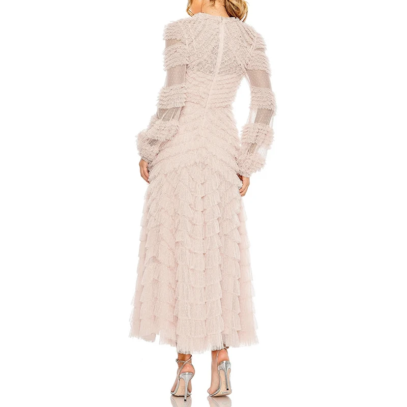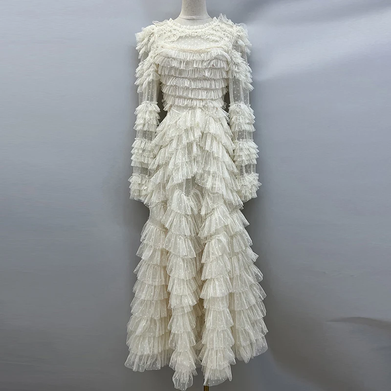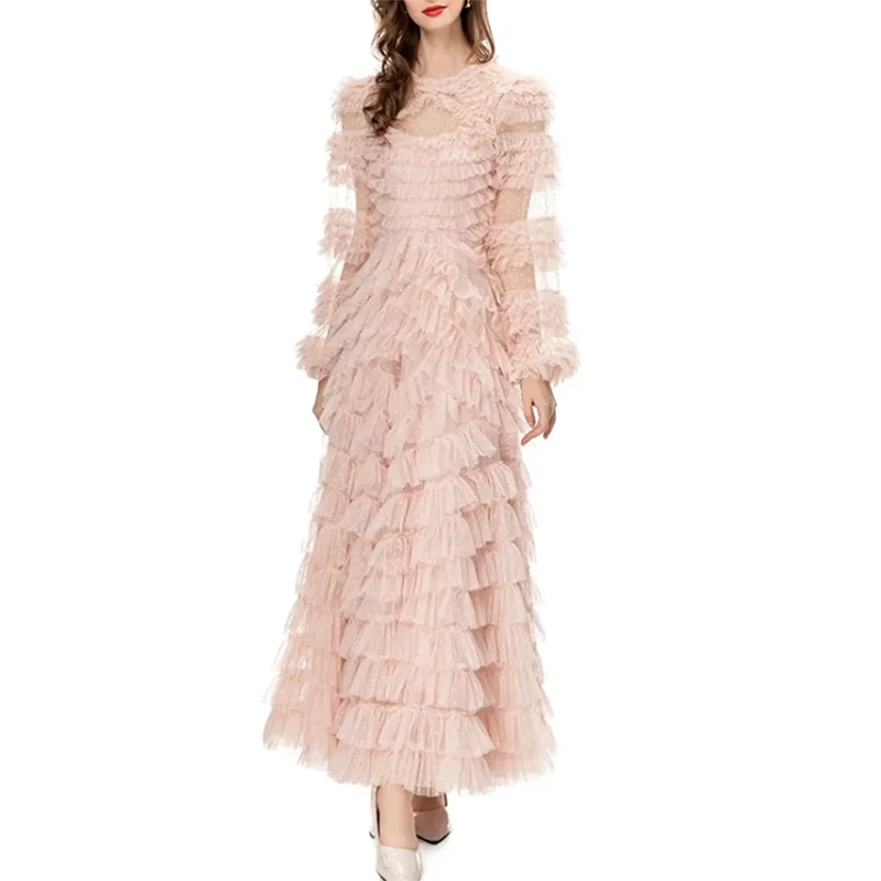 CHICEVER Temperament Patchwork Mesh Long Sleeve Dresses Woman Long Bodycon Dress