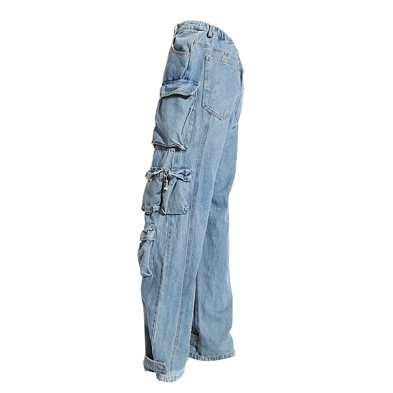 CHICEVER Women's Pant Vintage Patchwork Pockets High Waist Jean Women 2022 Fashion Fall New